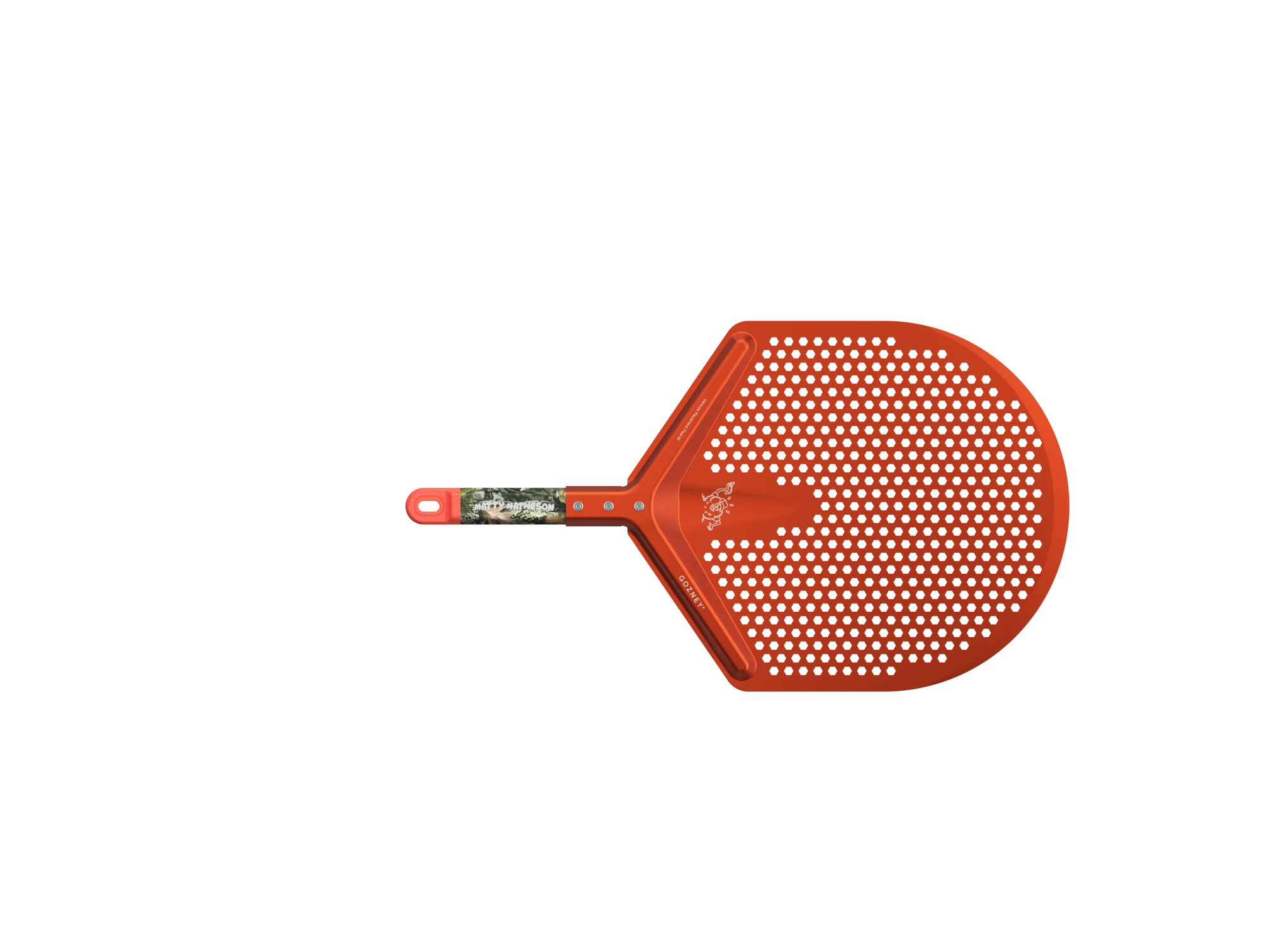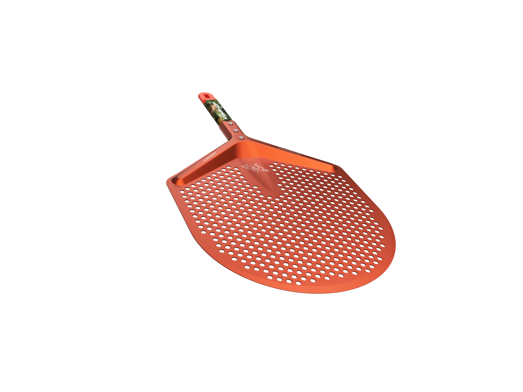 The round, perforated blade ensures maximum flour distribution, so your pizza slides smoothly into the oven without excess flour. Moreover, the round shape helps create a perfect pizza circle. The all-aluminum construction makes the peel strong yet lightweight, allowing you to use it effortlessly as an extension of your arm.