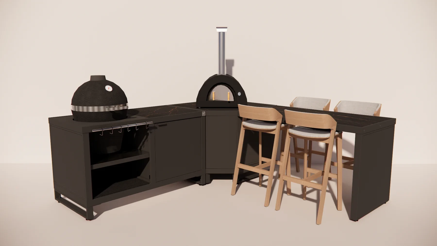 Complete outdoor kitchen setup with Rubix Corner, Duo and Bar