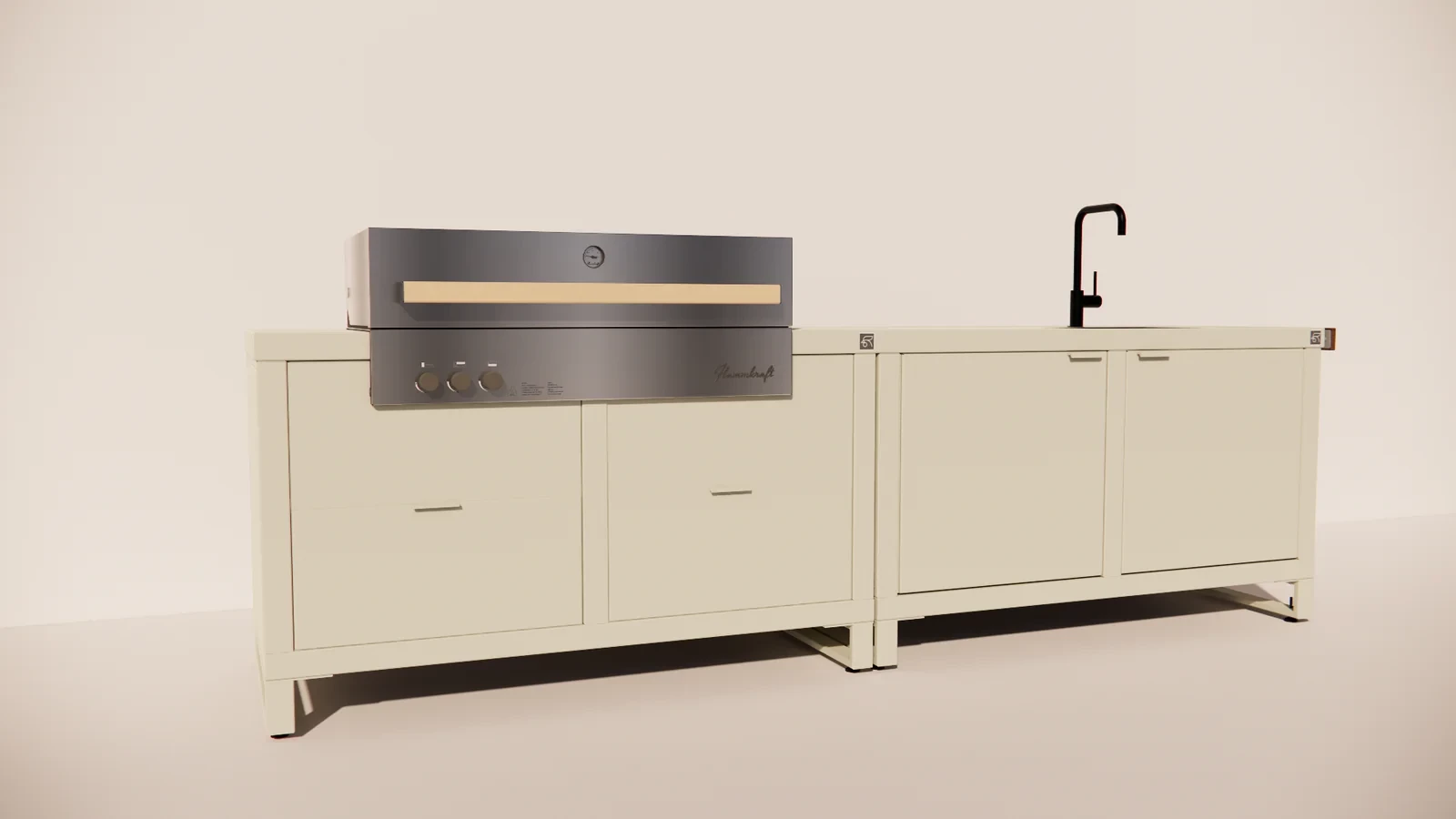 Thanks to its sleek, modular design, this outdoor kitchen fits perfectly into both modern and classic gardens. The materials used are weather-resistant, low-maintenance, and of high quality, ensuring a durable outdoor kitchen that will last for years.