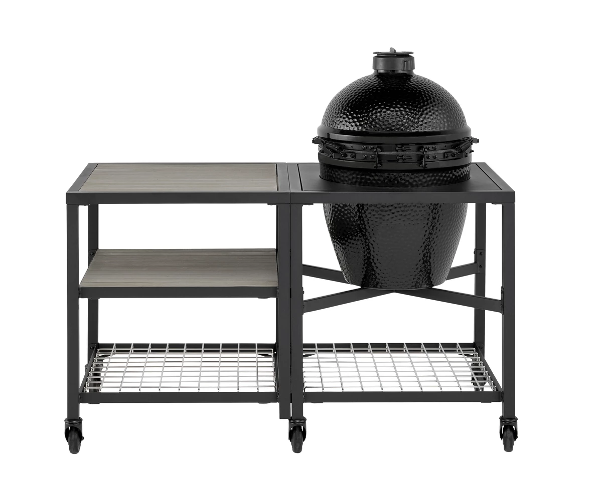 The Big Green Egg The Onyx XLarge Outdoor Kitchen is a complete outdoor kitchen with a spacious kamado barbecue, frame, workspace, and accessories for luxurious and versatile outdoor cooking.