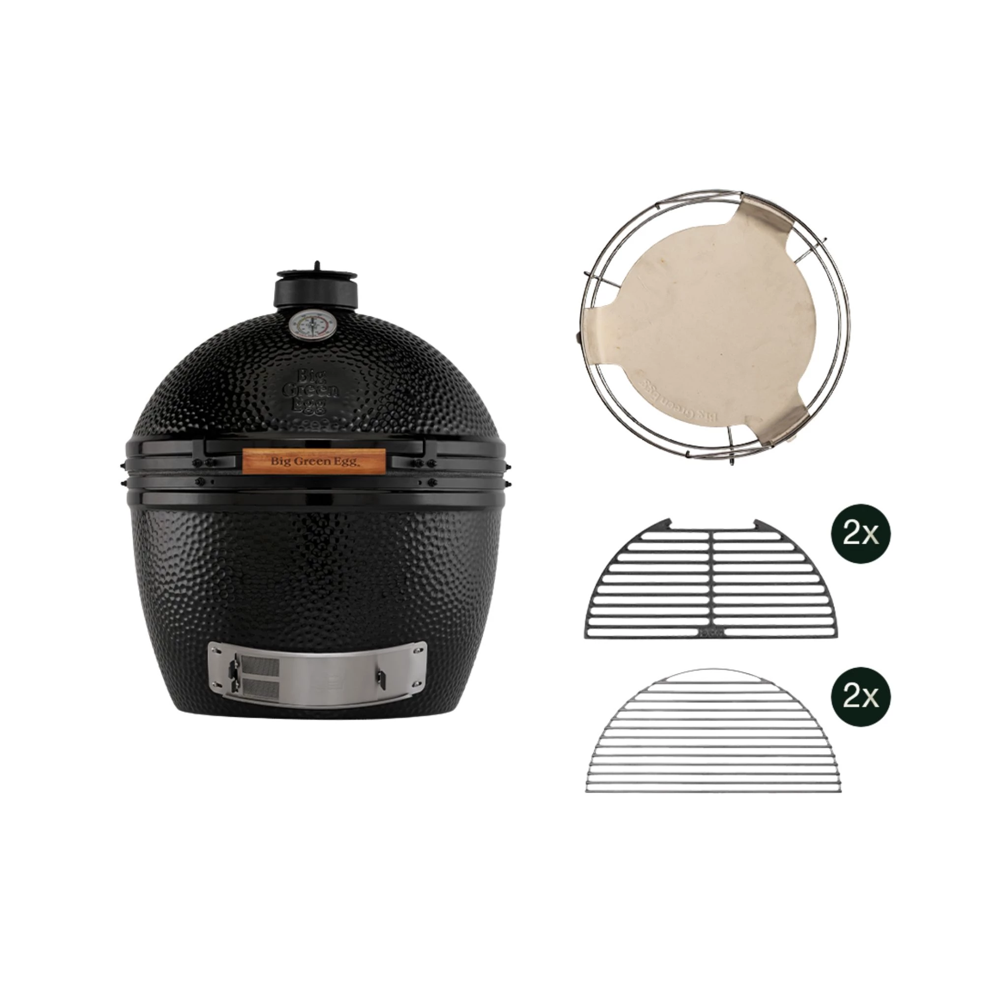 The Big Green Egg The Onyx XLarge Start Collection is an excellent choice for those who want to get off to a good start with a spacious kamado barbecue. This package combines the exclusive look of The Onyx XLarge with accessories that provide plenty of cooking possibilities right from the first session.