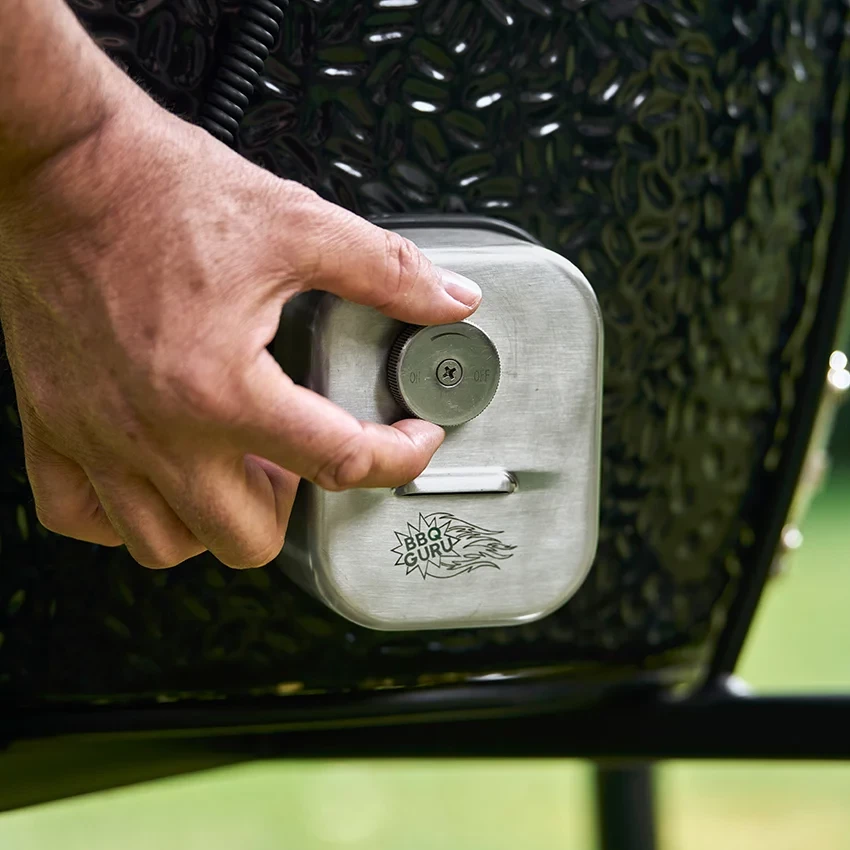 The key difference in this model is the permanently integrated fan, developed in collaboration with BBQ Guru. This ensures an even airflow and therefore a very stable temperature. Ideal if you like to prepare low- and slow-cooked dishes like pulled pork, brisket, or spare ribs where time and temperature are paramount. You can fine-tune your kamado and maintain a consistent heat, even during longer sessions.