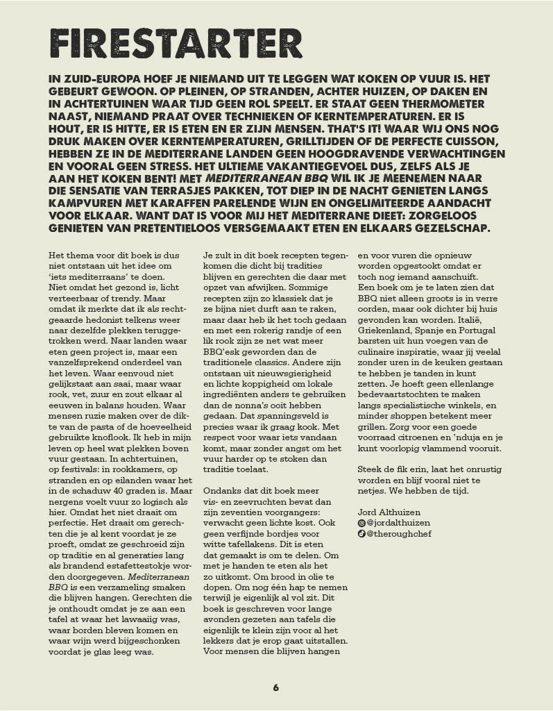 The basics are clear and practical. Good olive oil, fragrant herbs, pure ingredients, and of course, wood smoke. This allows you to create dishes at home that are full of flavor, yet uncomplicated. Whether you cook on a kamado grill, ceramic grill, or another type of barbecue, this book will inspire you to cook outdoors more often and with more variety.