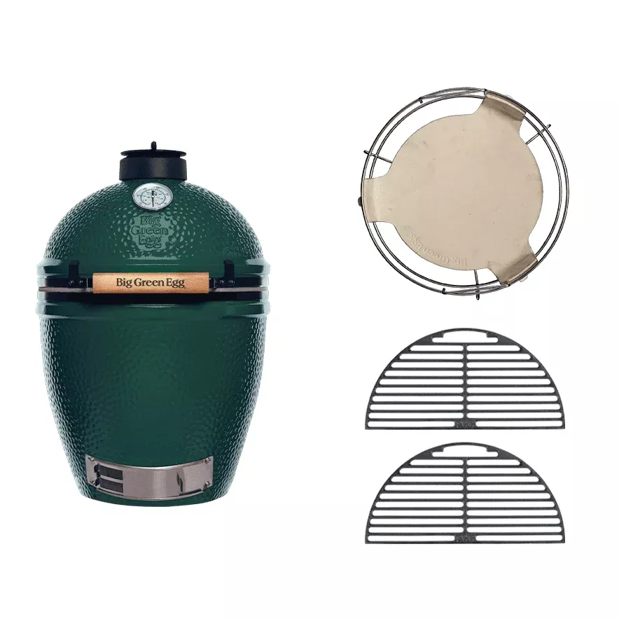 This starter kit is designed for outdoor chefs who want to get serious right away and incorporate their Big Green Egg into their own setup. It includes everything you need for grilling, baking, smoking, and slow cooking.