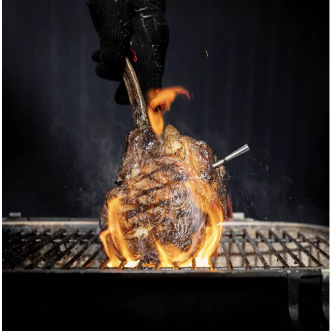 There are more sensors in the probe than before. There are now 5 sensors that measure the core temperature and 1 sensor in that environment measures temperature, all with an accuracy of +/- 0.3 degrees Celsius. The probe can measure core temperature up to 105ºC (221ºF) and up to 500ºC (932ºF) for ambient temperature. This is a big plus for those who often cook outside on the Kamado or on the gas barbecue or grill. The 1st model, the original Meater and the Meater Plus 1 can handle up to a maximum temperature of 275ºC.