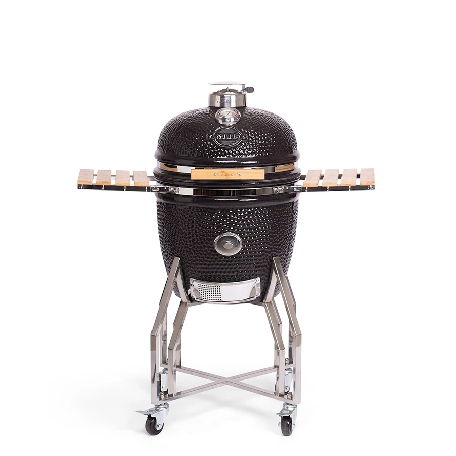 The LARGE Kamado comes with an ash pan and coal basket for easy ash and charcoal removal. YAKINIKU® Kamados not only offer top quality, but also add luxury to any outdoor kitchen. The grill surface can be expanded with an additional raised rack (not included), giving you 70% more space. The unique opening in the Kamado makes every meal a taste sensation. With the woodchipper you add smoking wood without heat loss, and the double insulation ensures safe use. The air slider with precise air holes at the bottom provides precise temperature control.