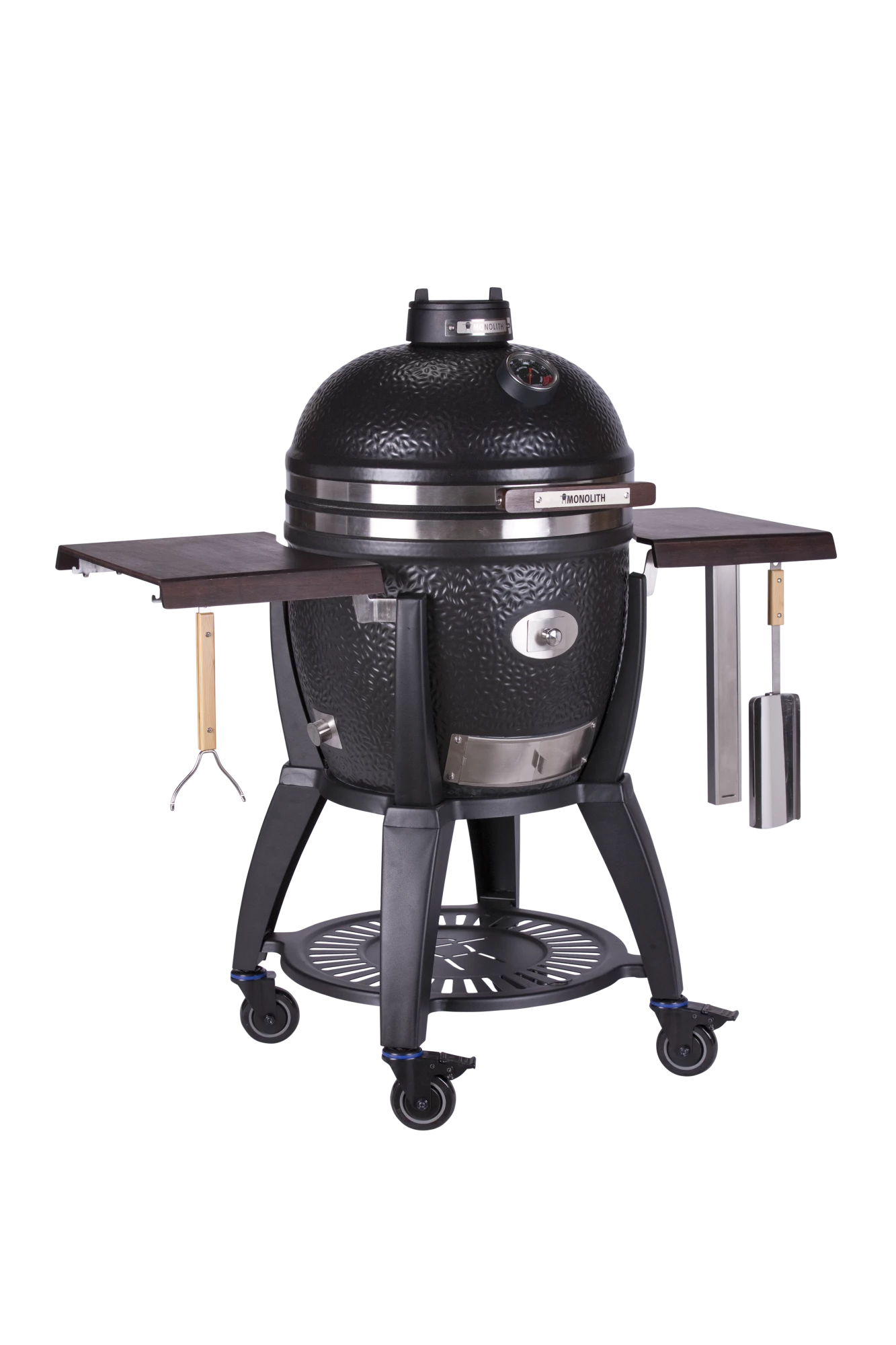 A leading kamado grill, embodying both innovation and tradition, redefining the art of barbecuing. Its unique silicate ceramic handles every challenge, from succulent steaks to smoky vegetables. Its elegant design, featuring a durable satin-matte glaze and optional carbonized heavy bamboo side tables, combines visual beauty with functionality.