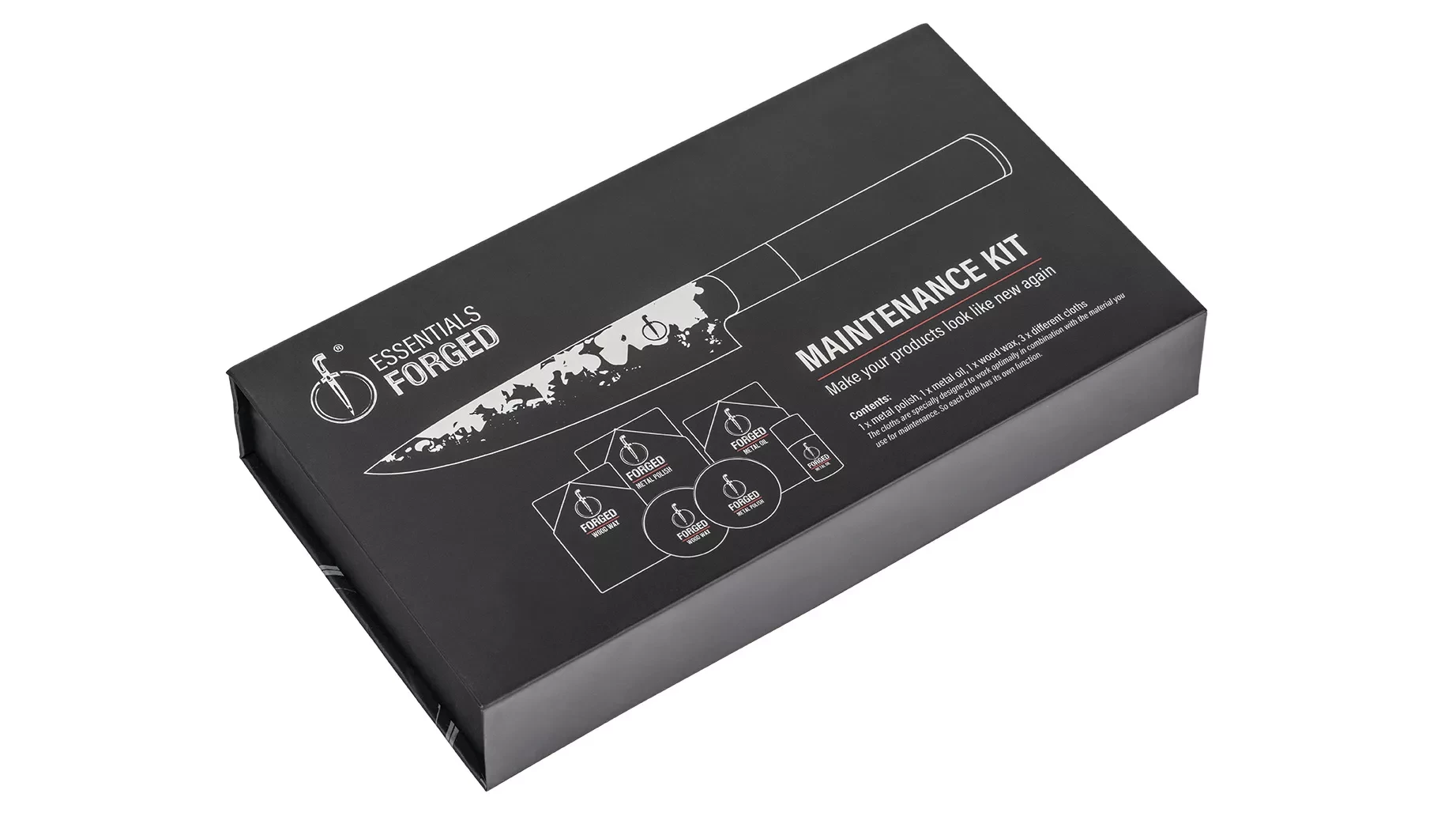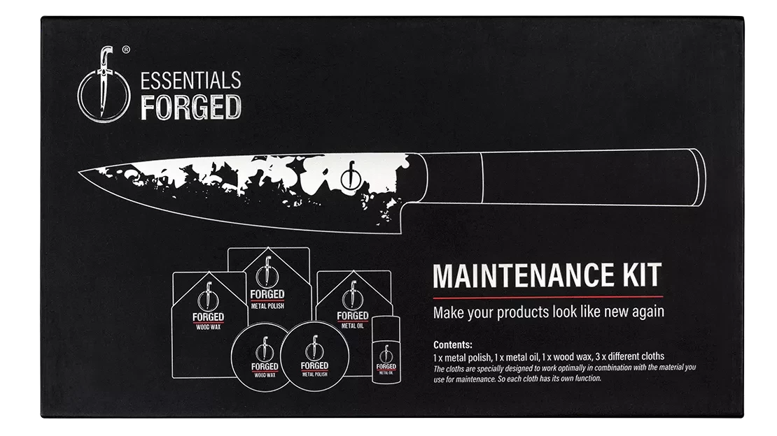 The maintenance set offers specific solutions for each part of your Forged items. The metal paste removes rust and tarnish from forged knives and steel pans, while the metal oil creates a protective layer on the blade, which prevents rust. The wood wax, made from beeswax, nourishes wooden handles and prevents them from drying out, and is also ideal for cutting boards and leather sheaths. With this complete set you can maintain the beauty and functionality of your Forged products for many years.