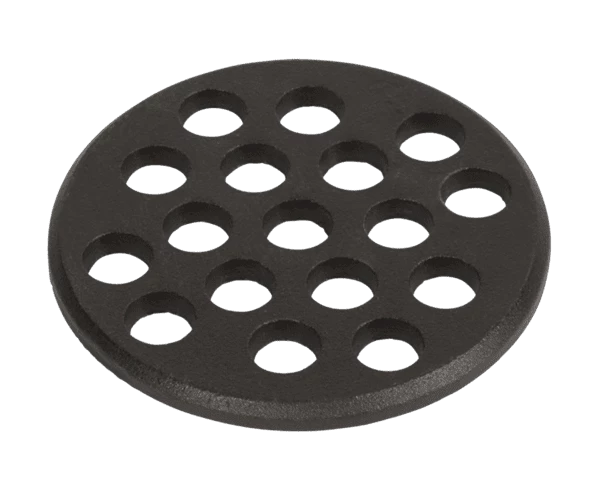 Het Big Green Egg Kolenrooster, ook bekend als de bodemplaat of vuurrooster, is een onmisbaar onderdeel van je Big Green Egg. Speciaal ontworpen voor de modellen Large en MiniMax, bevordert dit gietijzeren rooster een gelijkmatige luchtstroom en zorgt het voor een efficiënte verbranding van houtskool. Als je huidige kolenrooster versleten is, is dit hoogwaardige rooster het perfecte vervangingsonderdeel om de prestaties van je EGG te herstellen.
