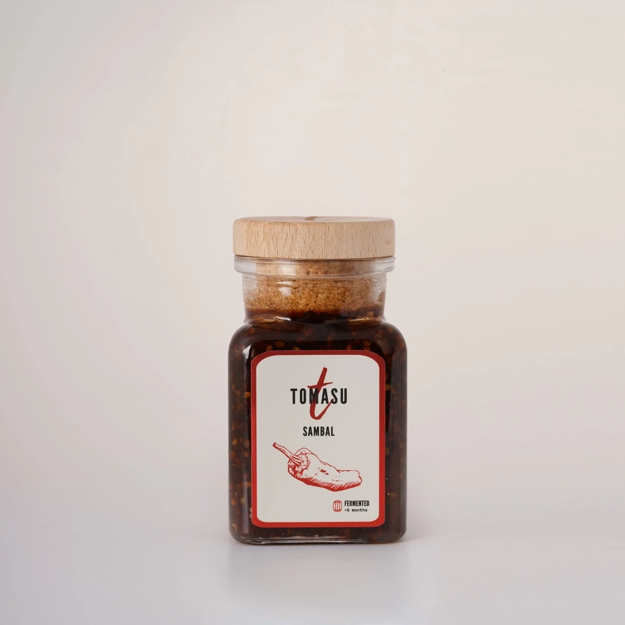 Tomasu Sambal is een verfijnde en ambachtelijk bereide sambal die perfect aansluit bij de kwaliteit en filosofie van Tomasu. Waar Tomasu bekendstaat om haar exclusieve sojasaus, wordt met deze sambal hetzelfde vakmanschap toegepast. Het resultaat is een smaakvolle sambal die zowel pittig als gelaagd is, met een mooie balans tussen scherpte, zoetheid en hartige diepte.