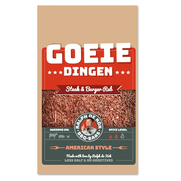 Ralph de Kok's Goeie Dingen Steak & Burger Rub is ideal for anyone looking for a high-quality spice blend that elevates the flavor of beef. The carefully selected blend of spices and the unique reverse rub technique create an intense flavor without overpowering the meat's natural flavors. Ralph specially developed this rub for the ultimate steak experience: use it after grilling to create a delicious layer of gravy that will surprise your guests time and time again.