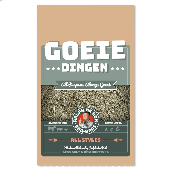 The Goeie Dingen All-Purpose Rub is ideal for anyone who loves barbecuing and is looking for a versatile spice mix to complement any dish. Ralph de Kok carefully crafted this rub, aiming to complement and enhance the flavors of meat, fish, or vegetables without overpowering them. The coarse texture of the herbs creates a unique taste experience where every bite is different. From fennel seeds to chili peppers, each spice adds a surprising twist to your meal.
