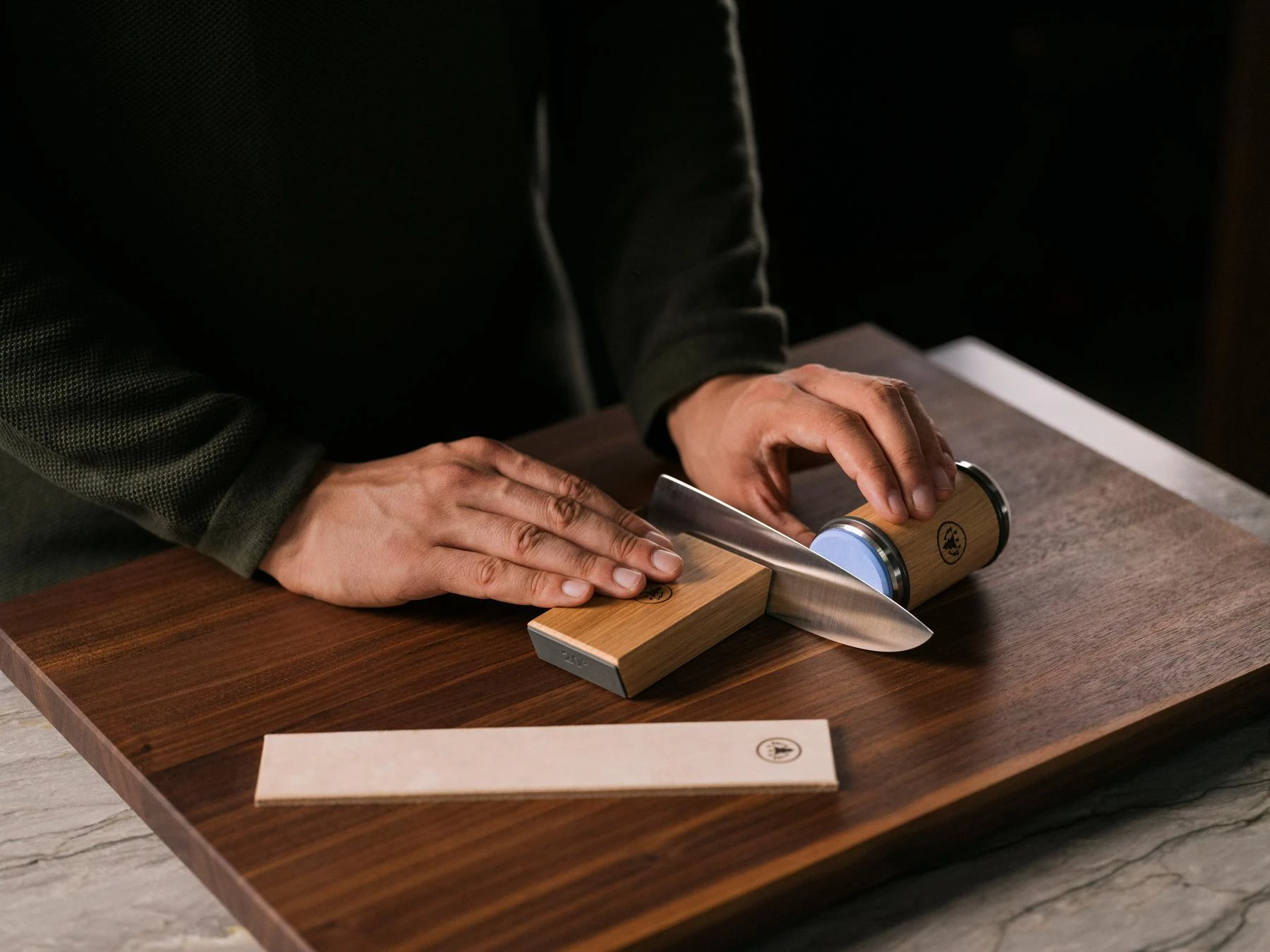 • Dubbele slijphoeken: Biedt zowel 15° als 20° slijphoeken, geschikt voor Japanse en Europese messen.