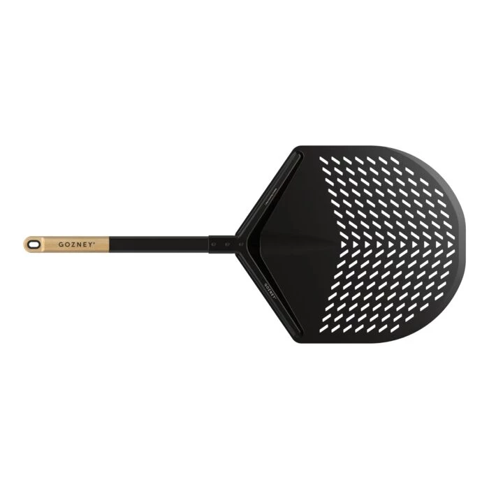 De Gozney Pizzaschep Large 14" met Houten Handvat is een must-have voor elke pizzabakker. Het lichte en duurzame aluminium blad is geperforeerd, waardoor overtollig meel eenvoudig wordt afgevoerd en je pizza een heerlijk knapperige bodem krijgt. Dankzij de brede 14-inch schep manoeuvreer je grote pizza’s moeiteloos in en uit je pizzaoven.