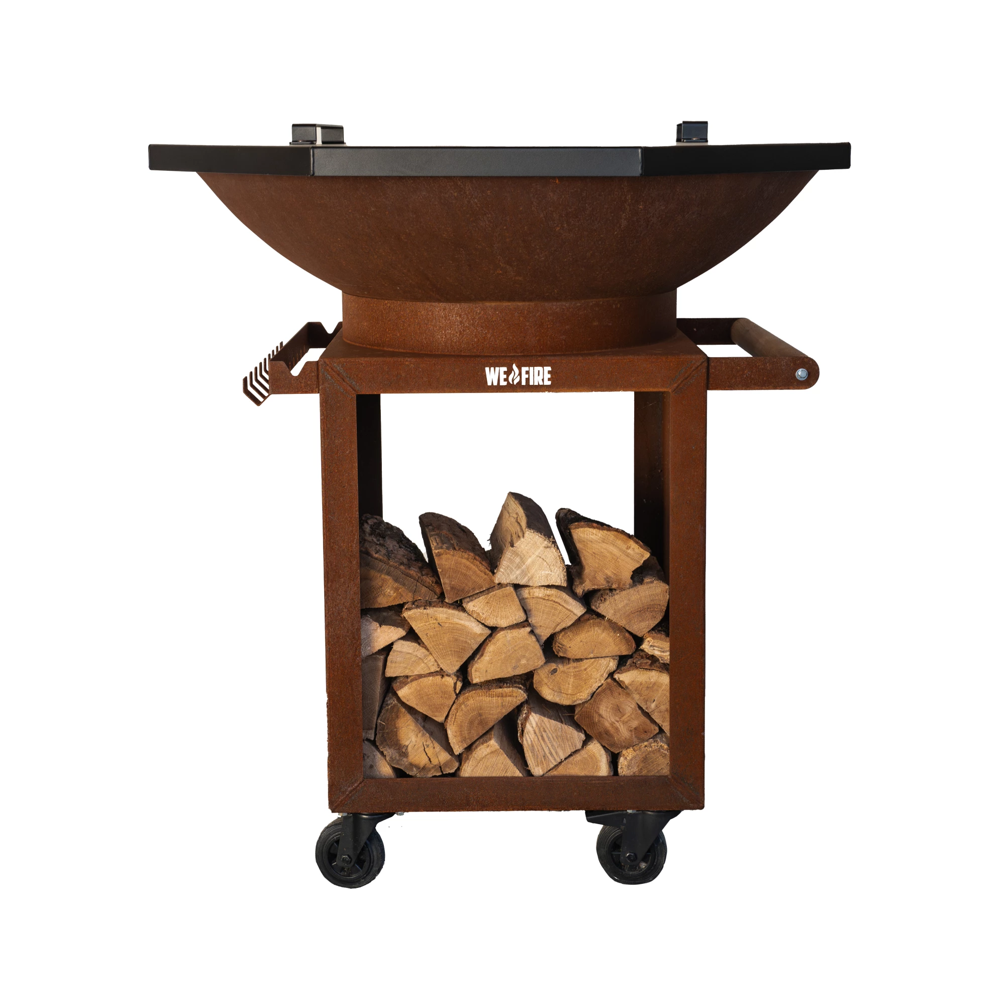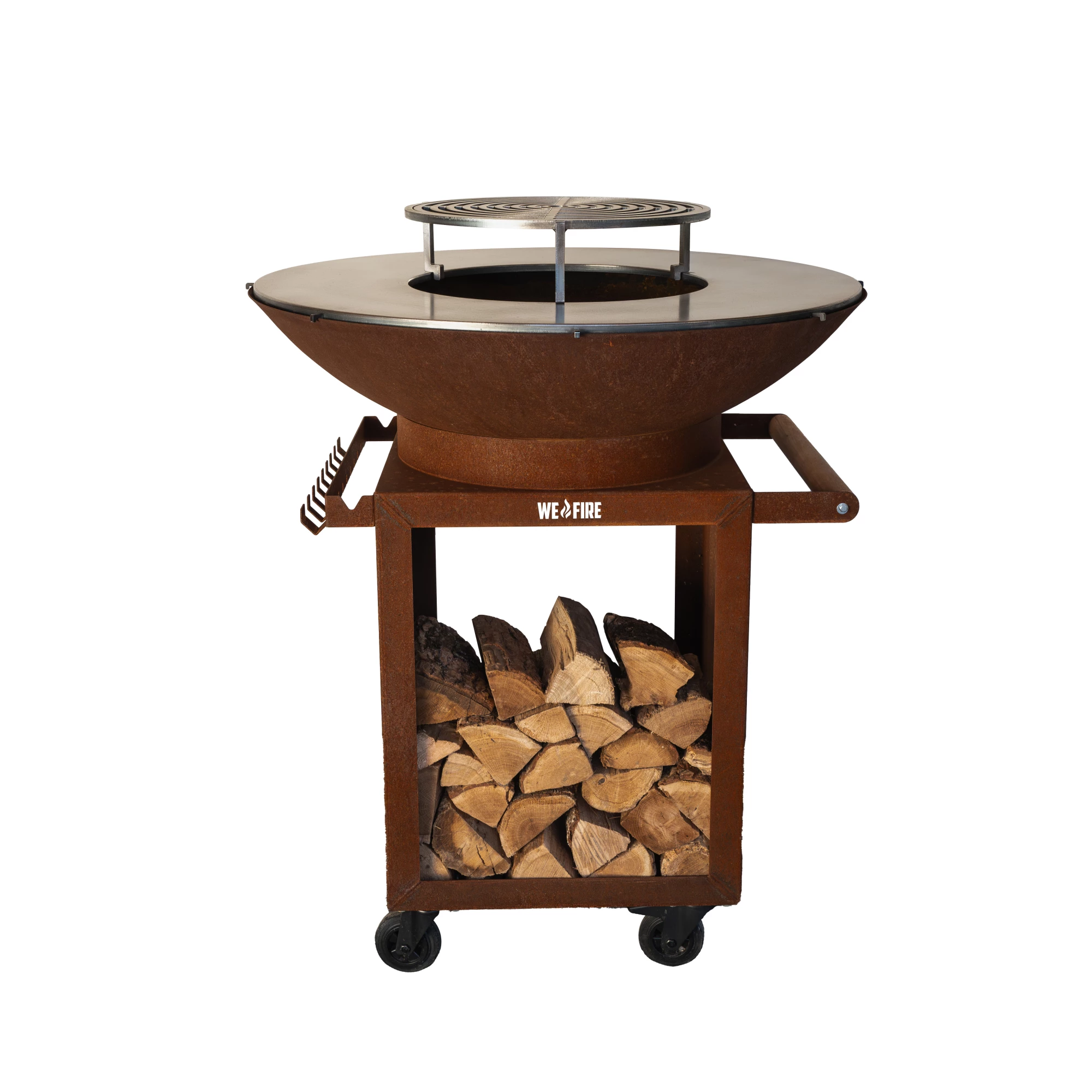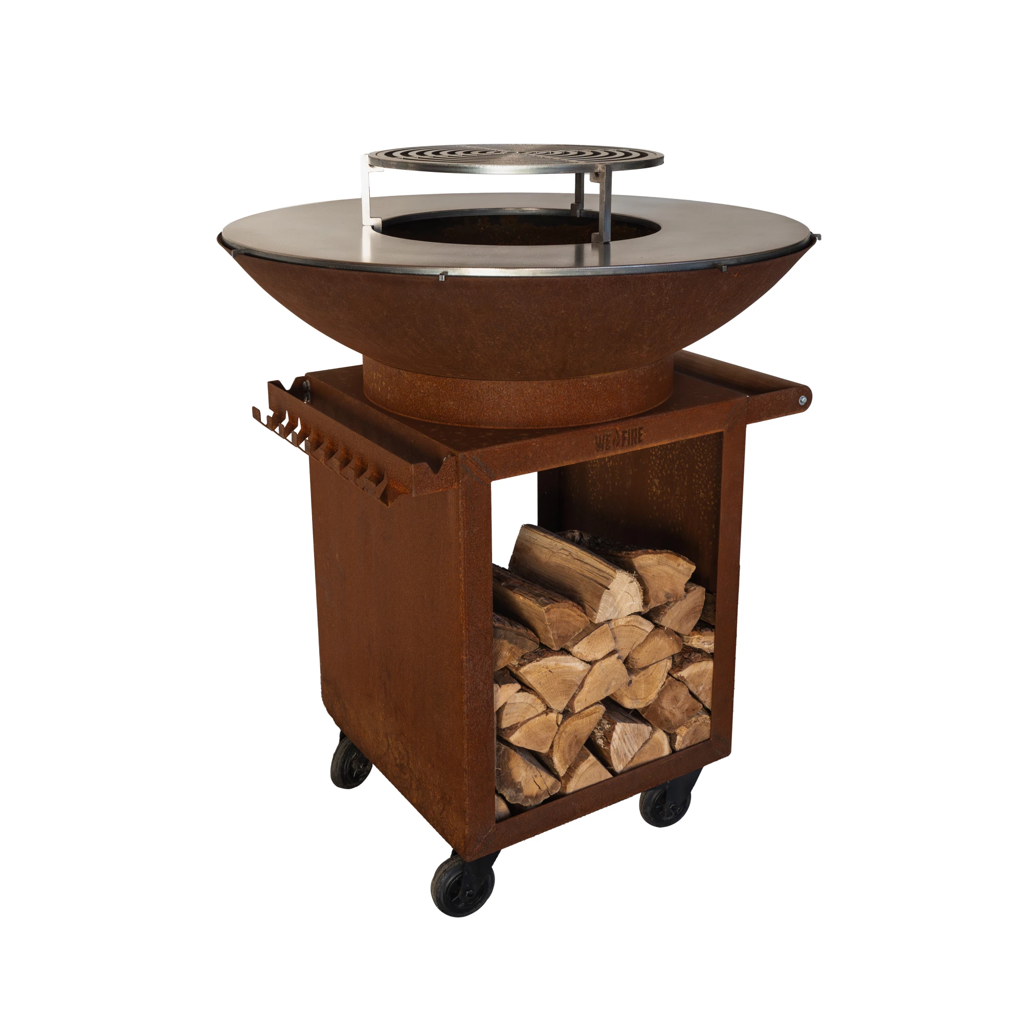 De WeFire Pro is voorzien van een zware, zwevende bakplaat met een opening in het midden. Zo bereid je gerechten direct op de plancha en voeg je eenvoudig hout toe via het hart van het vuur. De bakplaat is afneembaar, waardoor je de BBQ in een handomdraai omtovert tot volwaardige buitenhaard voor sfeervolle avonden.
