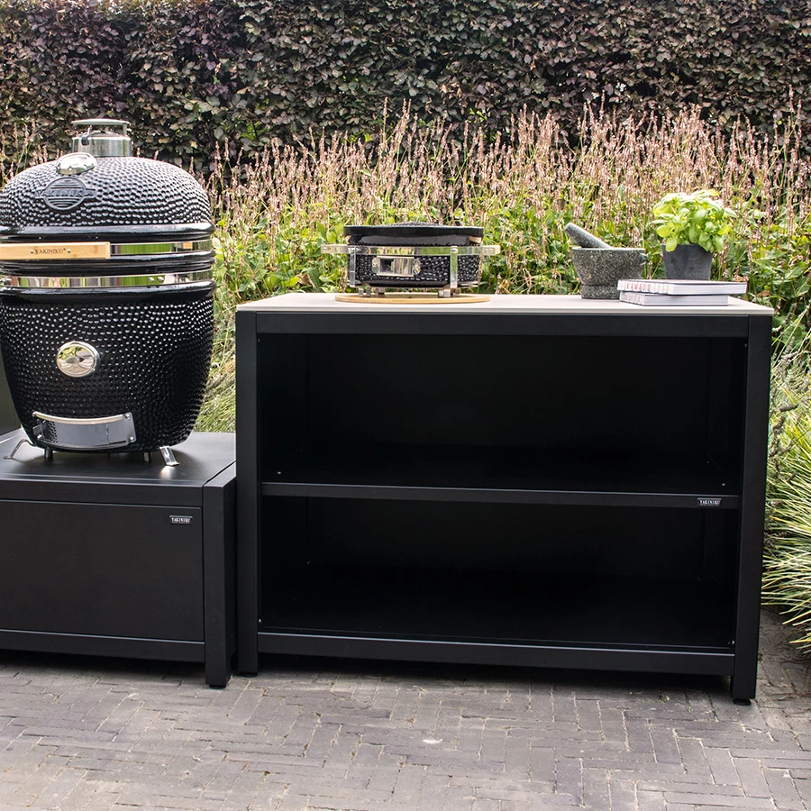 With the YAKINIKU® Luxury outdoor kitchen frame of 120x70 cm you can create the ideal outdoor kitchen for your Kamado. This kitchen part can be used independently or connected to other parts of the outdoor kitchen. The frame is sturdy enough to support the weight of both a YAKINIKU® MINI Kamado and a YAKINIKU® COMPACT Kamado.