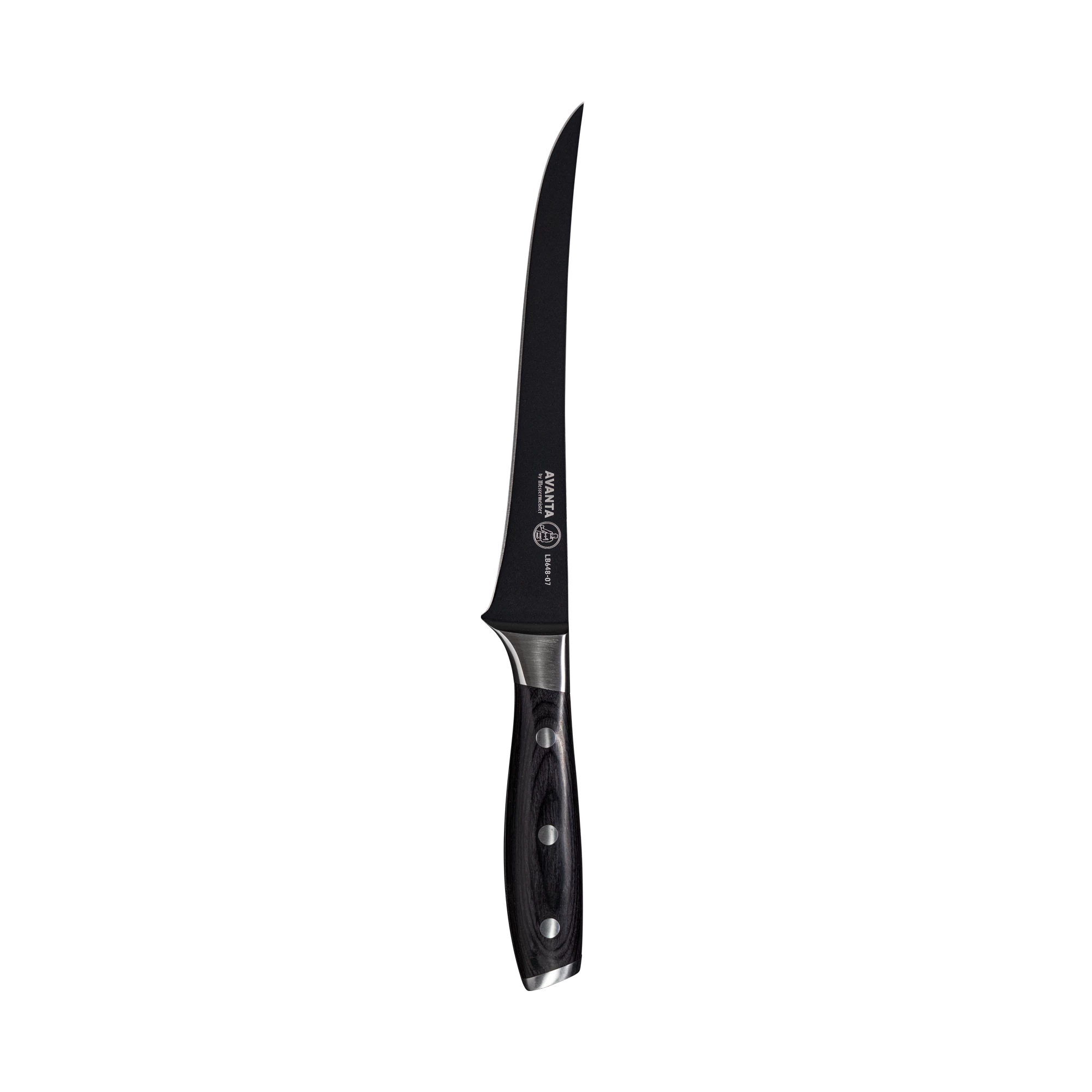 Dankzij de full-tang constructie en solide bolster ervaar je perfecte balans en controle bij het fileren van vis, het verwijderen van vliezen en het nauwkeurig ontvellen van vlees. De drievoudig genietende ebony Pakkawood handgreep geeft een luxe uitstraling en ligt comfortabel in de hand, zelfs tijdens intensief gebruik.