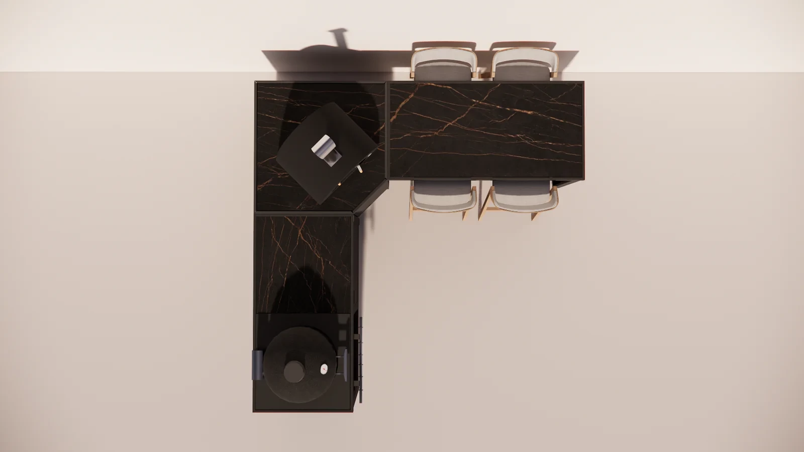 Bar setup with seating for four people