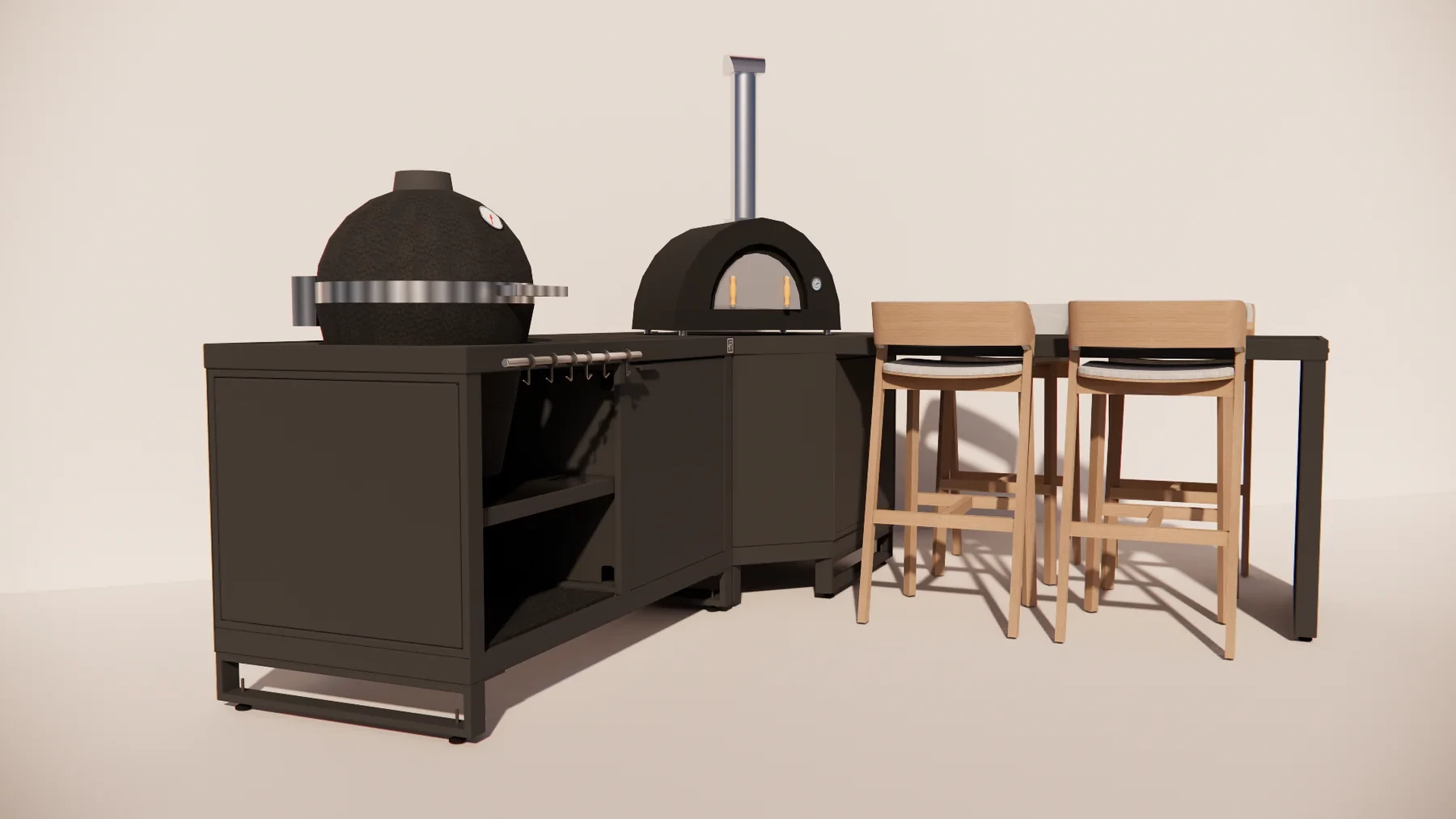 Complete outdoor kitchen setup with Rubix Corner, Duo and Bar