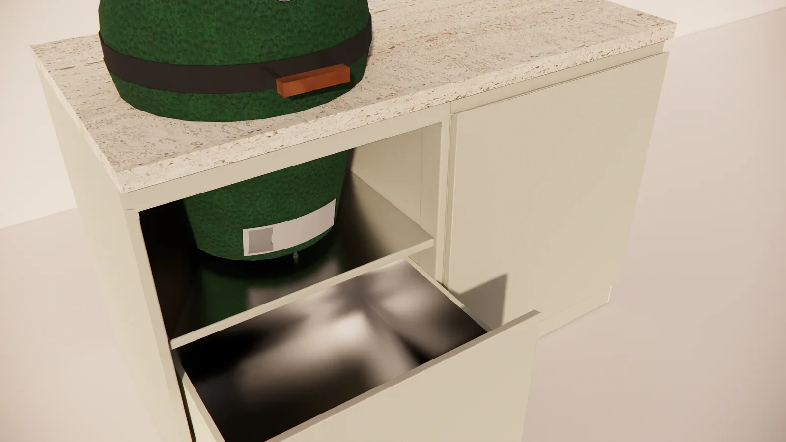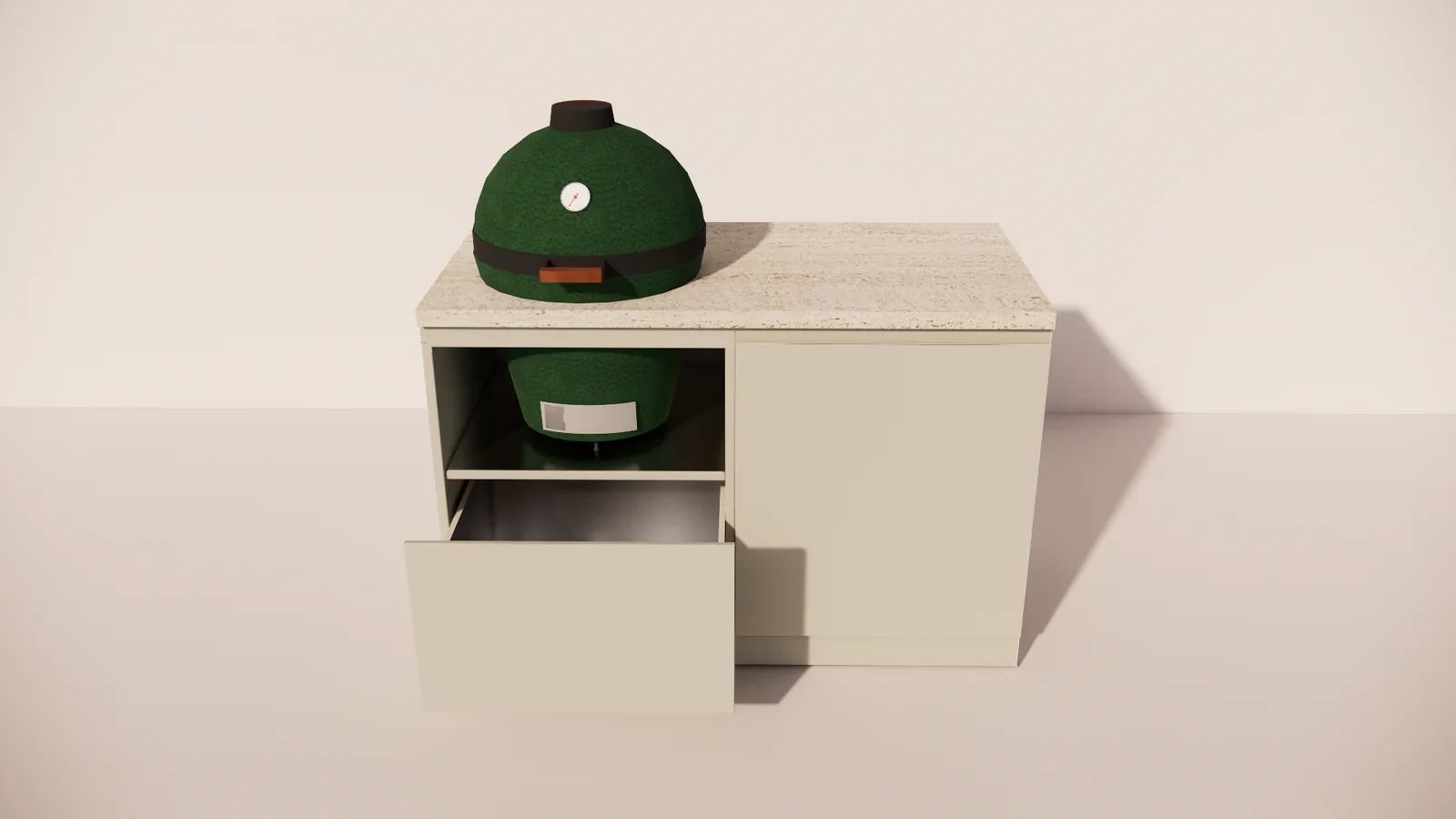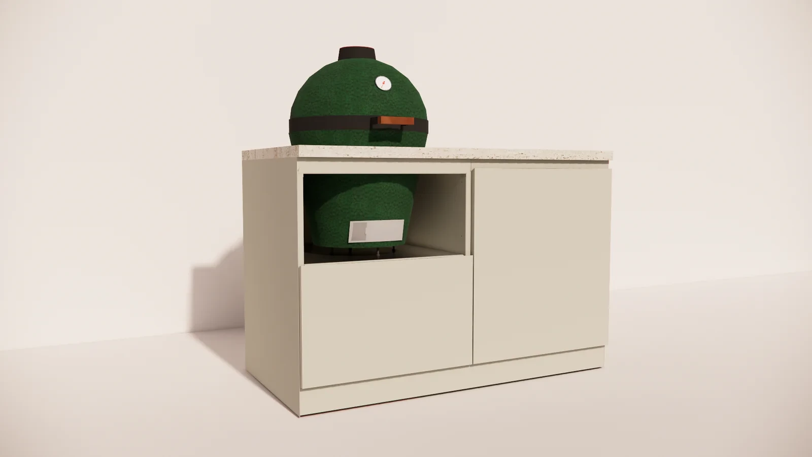 The Roostr Allure – Configuration 1 Allure with Kamado is the ideal choice for those who appreciate refined design and practicality in a single compact outdoor kitchen. This configuration combines the power of a ceramic kamado with the elegance of the Allure series, creating a stylish focal point in any outdoor space.