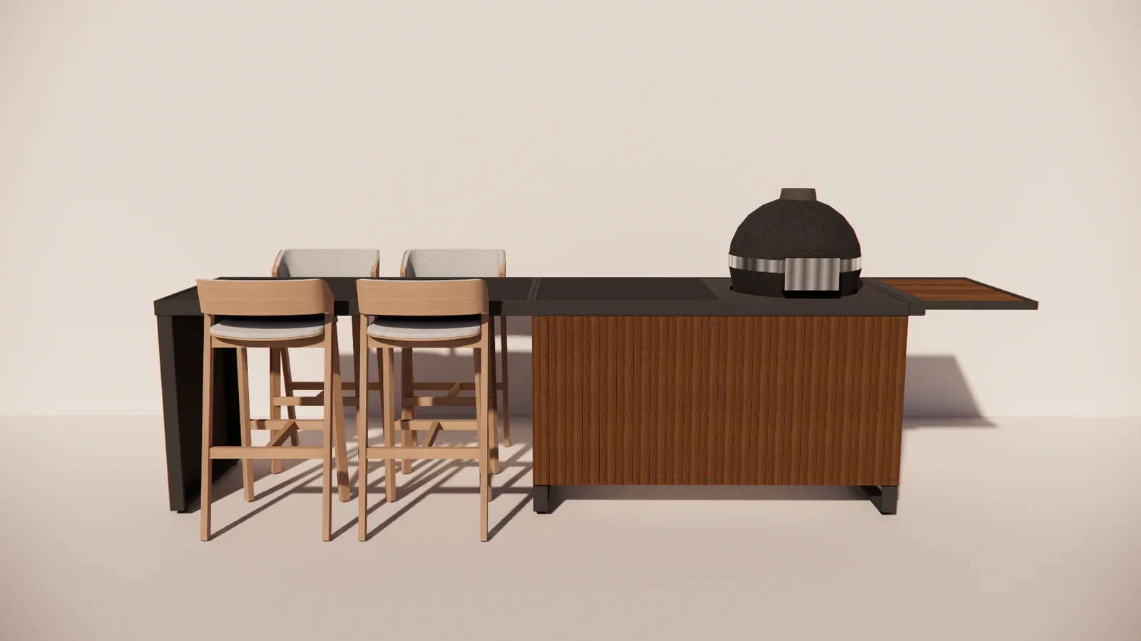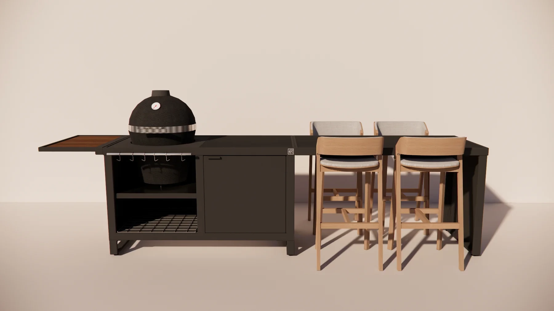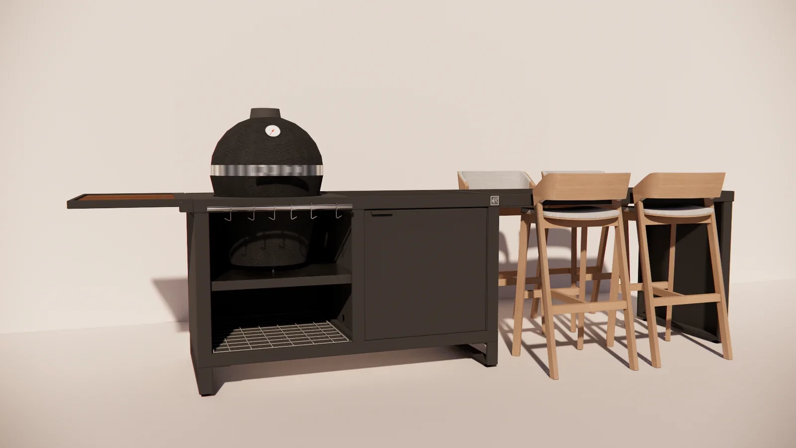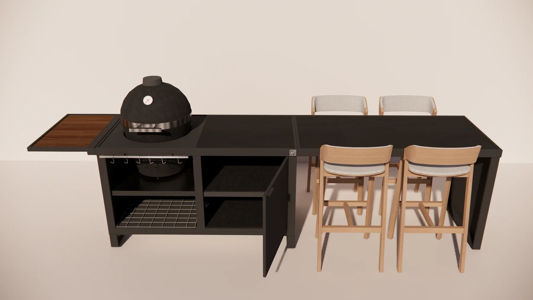 The Roostr Kamado – 4 Rubix Duo Frame with Kamado and 4-Person Bar is the perfect outdoor kitchen for those who want to combine cooking and socializing. This stylish setup from the Roostr Rubix line features a Duo Frame with an integrated kamado and a spacious bar for four – ideal for dinners, drinks, or relaxing moments with family and friends.