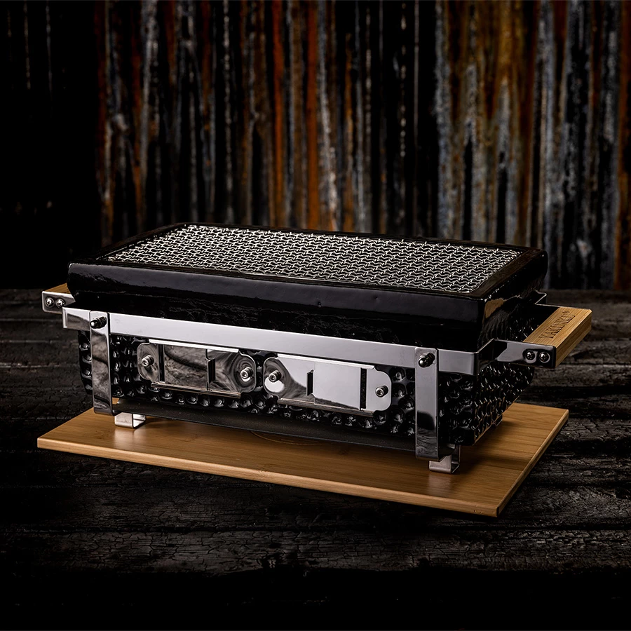 Are you ready to improve your grilling skills? Then choose the Konro & Yakitori grill! This rectangular Shichirin offers a spacious grilling surface of 39x21 cm, perfect for frying small or large pieces of meat. Thanks to the ventilation slides, the Shichirin can easily reach high temperatures and grill the meat evenly.