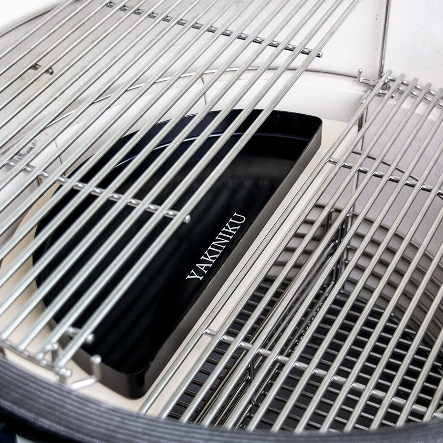 The half moon drip pan is a versatile tool. With this pan you can effortlessly collect moisture and fat while grilling, keeping your Kamado clean and preventing smoke development, resulting in a stable temperature. In addition to collecting fat, you can also use the drip pan to prepare ingredients, such as cooking a chicken in hay. In addition, the drip pan is ideal for adding a wine aroma to your dishes or creating moist air in your Kamado. Made of aluminum, the drip pan is easy to clean. To optimally protect the pan, you can place a baking mat in the pan before use, which makes cleaning easier. You can also use aluminum foil to line the pan; After use, simply remove the foil for a clean pan.