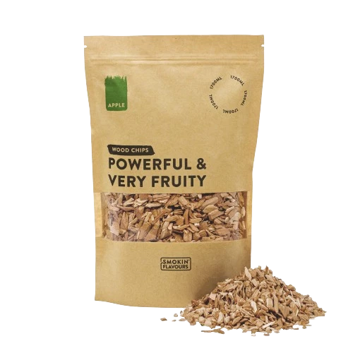 Smokin' Flavors Smoked Apple Slices, available in package contents of 1700 ml, spread a light fruit scent with nutty, licorice and dried raisin aromas, including light licorice extracts. These smoke chips are particularly tasty in combination with fish, chicken and pork. Designed for hot smoking on your charcoal or gas barbecue, use a smoker box or sprinkle a handful of chips into the charcoal for a delicious smoking experience. Enjoy the delicious aromas when preparing meat on the barbecue with Smokin' Flavors.