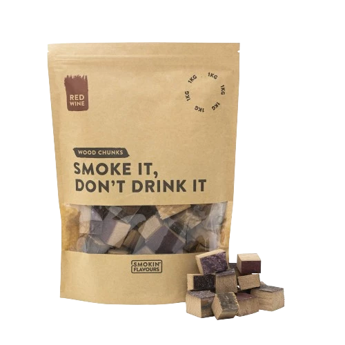 Smokin' Flavors Smoke Chunks Red Wine Barrels 1kg Experience a full, sweet taste with smoke wood from red wine barrels, as if you were in your own backyard in Bordeaux! Made of oak, the barrels provide a powerful, spicy counterpart to the sweet aroma. Smoke chunks are ideal for long-lasting smoke during slow cooking. Add one or more dry chunks to the charcoal and let it smoke quietly for a few hours.