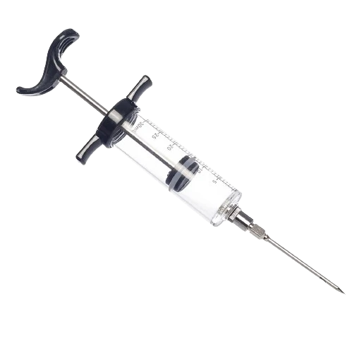 Smokin' Flavors Marinade Syringe Easily marinate meat with this handy marinade syringe. Fill with flavorful marinade, insert the needle into the meat and inject the marinade precisely. Dishwasher safe. Equipped with a stainless steel mouthpiece and a capacity of 30 ml.