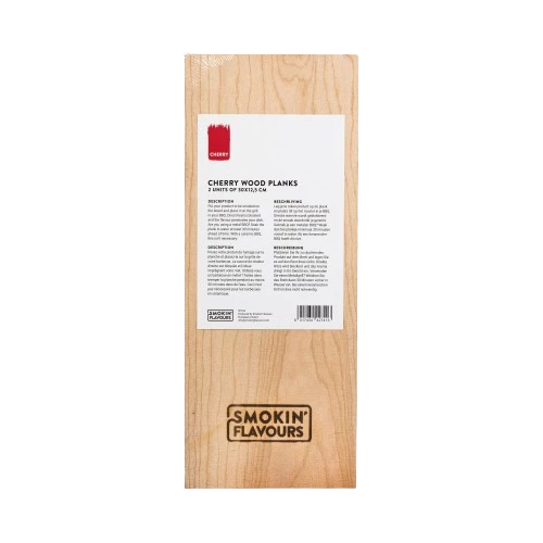 The cherry smoking board has dimensions of 30 x 12.5 x 1 cm. For metal BBQs it is recommended to soak the board in water for 30 minutes in advance, while this is not necessary for ceramic BBQs. This way you can enjoy a tasty smoking experience with perfect results every time.