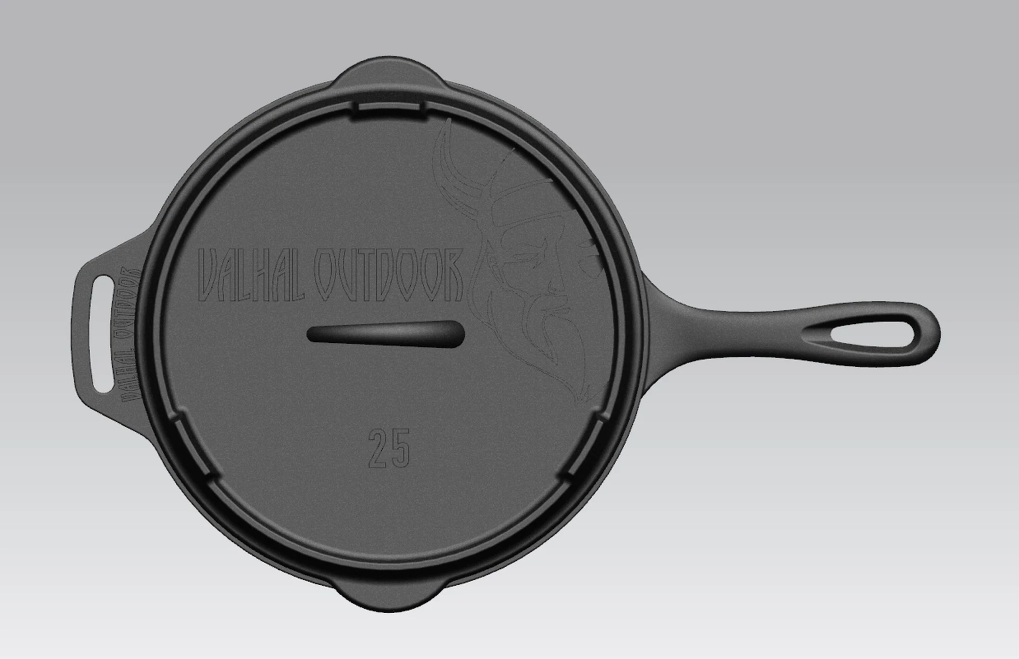 The Valhal Skillet Cast Iron Lid ø 25 cm with Grill Pattern is ideal for various dishes. Made of high-quality, heat-resistant material with a unique grill pattern for a perfect grilled taste. The handle ensures easy handling, while the scratch resistance and light weight make cleaning and moving easy. This durable and reliable lid is your partner for preparing perfect dishes.