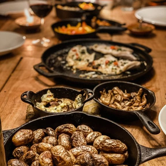 The Valhal Outdoor pan is a skillet, a frying pan made entirely of cast iron. With or two handles, it can handle high temperatures and retain heat for a long time. Without a non-stick coating, no harmful substances are released, which is why many chefs choose this cast iron pan. Suitable for all heat sources, indoors and outdoors. This skillet, with a diameter of 25 cm and two handles, is more compact than a variant with a handle, giving you more space on your barbecue or in the oven. Handy pouring spouts make it easy to pour sauces or cooking liquid. Cast iron becomes more beautiful and better with use, and with good care you have a pan for life. You can burn cast iron pans repeatedly for a renewed appearance. Valhal Outdoor's cast iron items are already fired at the factory with natural oil, but for optimal baking results it is recommended to fire the cast iron yourself. Discover the special Valhal Outdoor wax for the care and burning of cast iron.