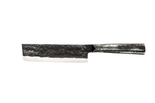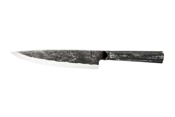 Discover the Forged Brute 3-piece knife set with a chef's knife, chopping ax and universal knife. Made of Japanese 440C steel with 58 Rockwell hardness. Hand forged, each knife is unique. Blade thickness of 2 mm and cutting angle of 18 degrees. Packaged in a luxurious wooden box, with a 10-year warranty. A powerful addition to your kitchen.