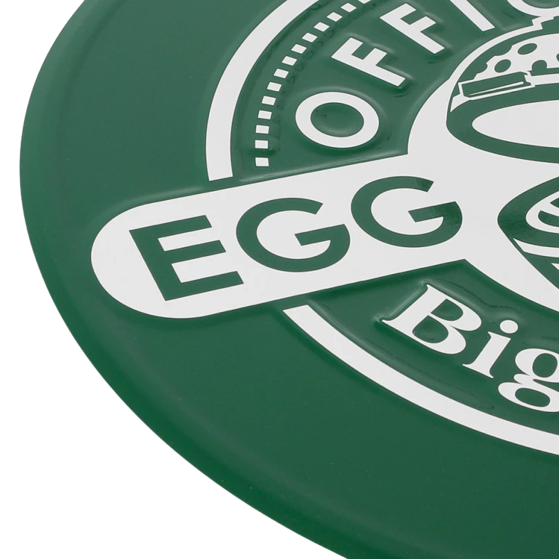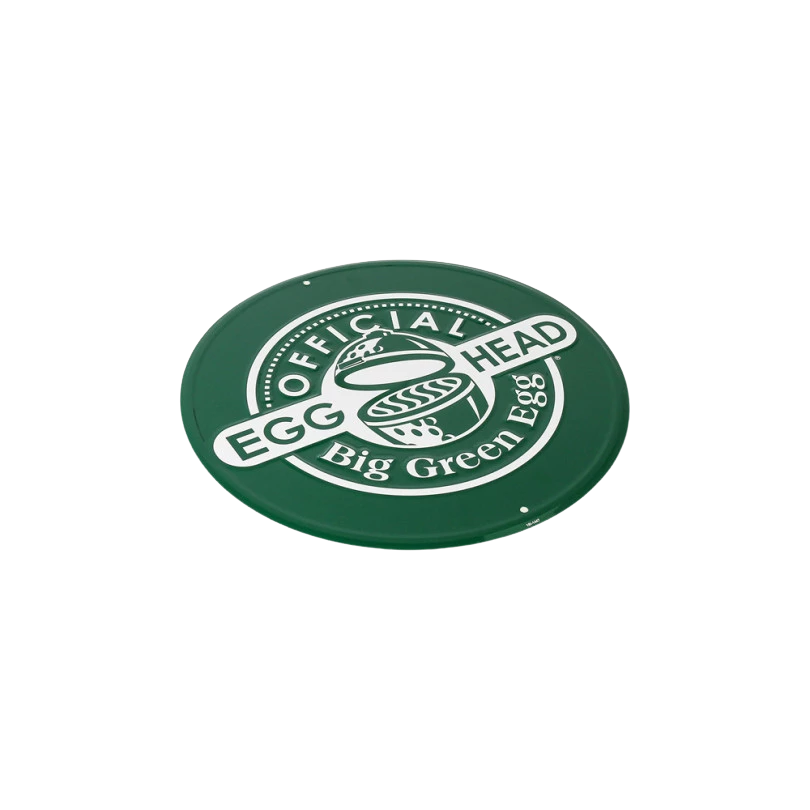 The board is made of durable aluminum and features the distinctive green color with the white "Official EGGhead" print. With a diameter of 30 cm, it's a striking yet stylish detail that perfectly complements any Big Green Egg setup. Thanks to its two mounting points, it's easy to hang – indoors or outdoors.