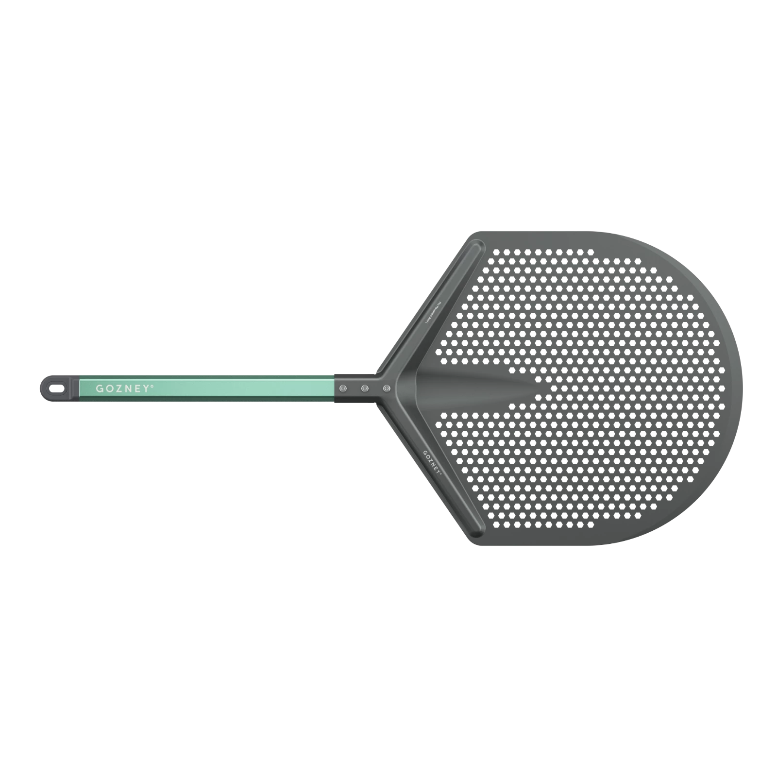 The aluminum handle is designed with angled sides for a secure grip and a curved base, allowing the peel to glide smoothly through the hand as you insert the pizza. The all-aluminum design offers a perfect balance of strength, lightweight comfort, and responsiveness – a true extension of the pizza maker's hand.