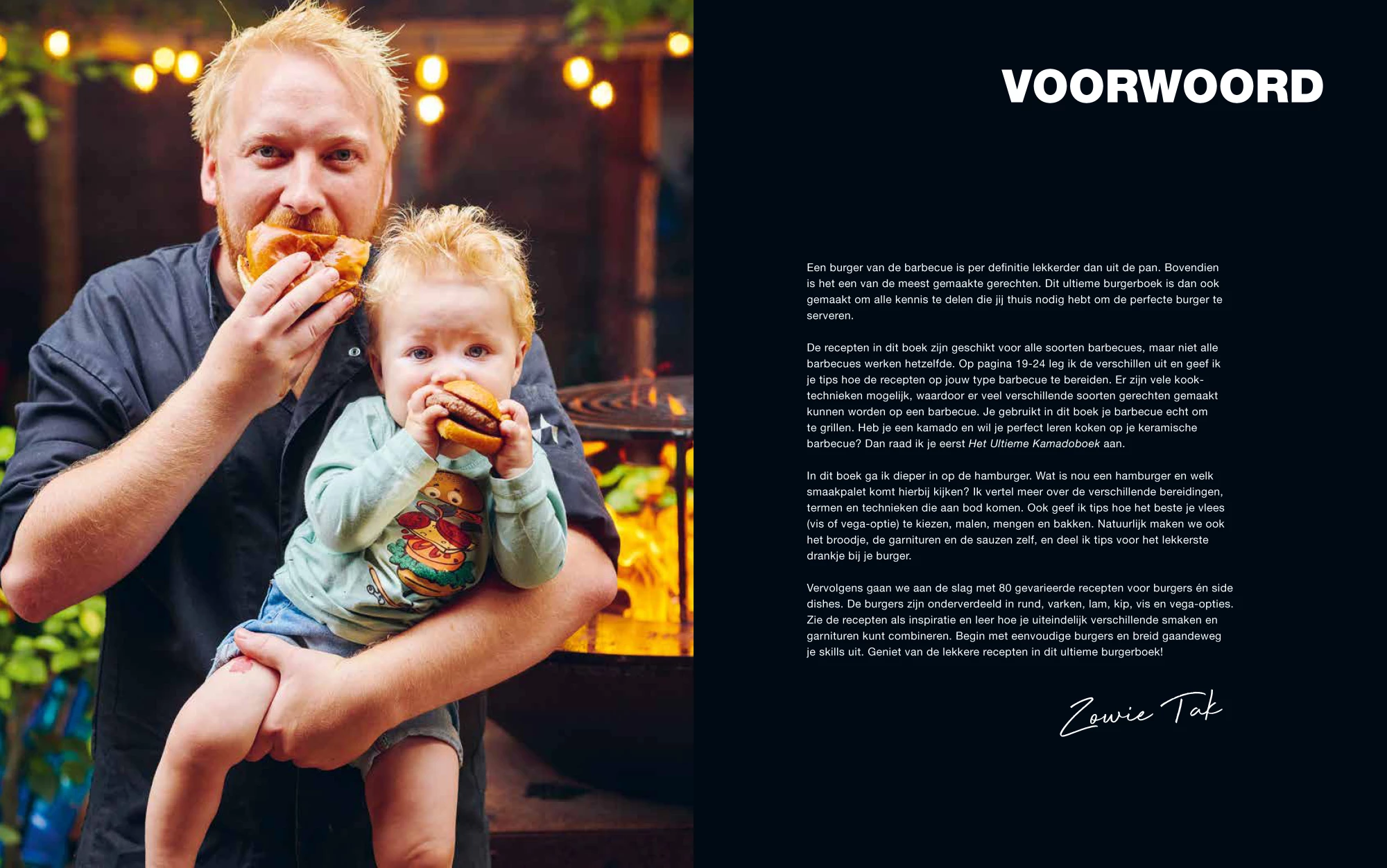 Be inspired by the creative recipes of chef Zowie Tak and his "The Ultimate Burger Book". Learn the secrets of making delicious burgers and tasty side dishes. With 80 accessible recipes and useful tips, you too will become a master in preparing the perfect burger on the barbecue.