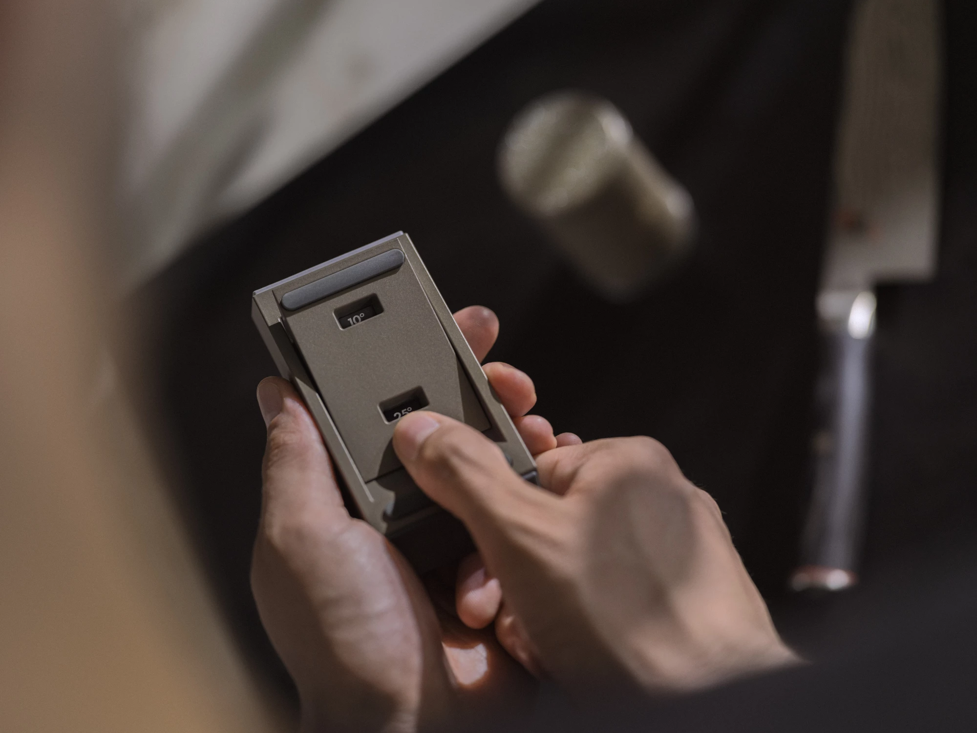 Looking for absolute control over your cutting angle? The HORL®3 Pro Sharpening Angle Attachment is designed for demanding knife sharpeners working with tough or extra-hard knife steels. With a single press of the ribbed base, you can switch between three positions, offering six angles: 10°, 13°, and 15° for delicate, razor-sharp cuts on hard steels, and 20°, 22° and 25° for robust, long-lasting edges on tough steels.
