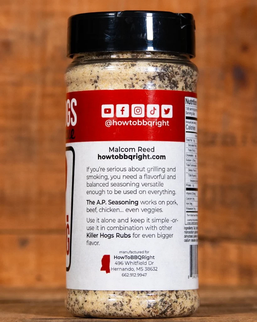 Killer Hogs The AP Rub 396g is dé all-purpose rub voor serieuze BBQ-liefhebbers. Deze veelzijdige kruidenmix geeft elk gerecht een volle, hartige smaak en is geschikt voor rund, varken, kip en zelfs groenten. De rub is ontwikkeld door het beroemde Killer Hogs BBQ Team en wordt wereldwijd gebruikt door zowel professionals als thuiskoks.