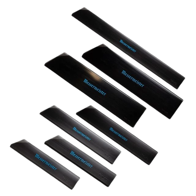 Messermeister, uitvinder van de originele Edge-Guard, presenteert de ultieme messenbeschermhoes set. Of je nu je messen in een messentas vervoert of los bewaart in een lade, deze hardplastic beschermhoezen voorkomen beschadiging van lemmeten en verhogen de veiligheid.