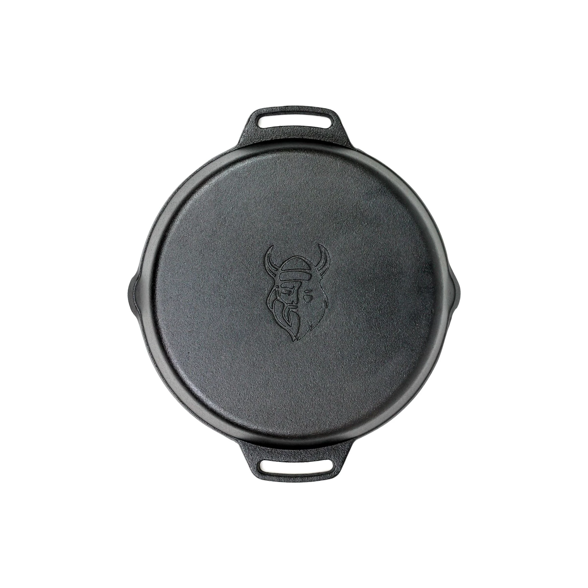 The Valhal Outdoor skillet, a frying pan made entirely of cast iron, is an essential kitchen pan with many advantages. With a diameter of 30 cm and two handles, this skillet offers a compact design for use on the barbecue or in the oven. Cast iron pans, known for their high heat resistance, do not have a non-stick coating and are suitable for any heat source. This makes the skillet versatile, suitable for both indoor and outdoor use. The cast iron becomes more beautiful and better over time through repeated firing, making the pan a lifelong companion. Valhal Outdoor skillet is already pre-treated with natural oil, ready for use, but for optimal results it is recommended to burn the cast iron itself a few more times with the special Valhal Outdoor wax. Discover the durability and versatility of this high-quality skillet.