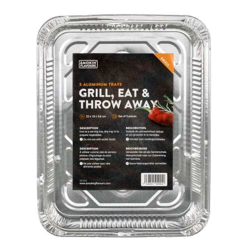 Smokin' Flavors Aluminum Containers Small: useful as a serving bowl, drip tray, or for vegetable preparation. Packed per 5 pieces.