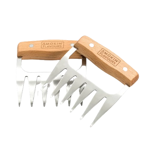 Smokin' Flavors Meat Claws Stainless Steel/Wood Tear meat effortlessly with these high-quality meat claws and quickly prepare delicious pulled dishes. Easy to clean, set of 2, dishwasher safe.