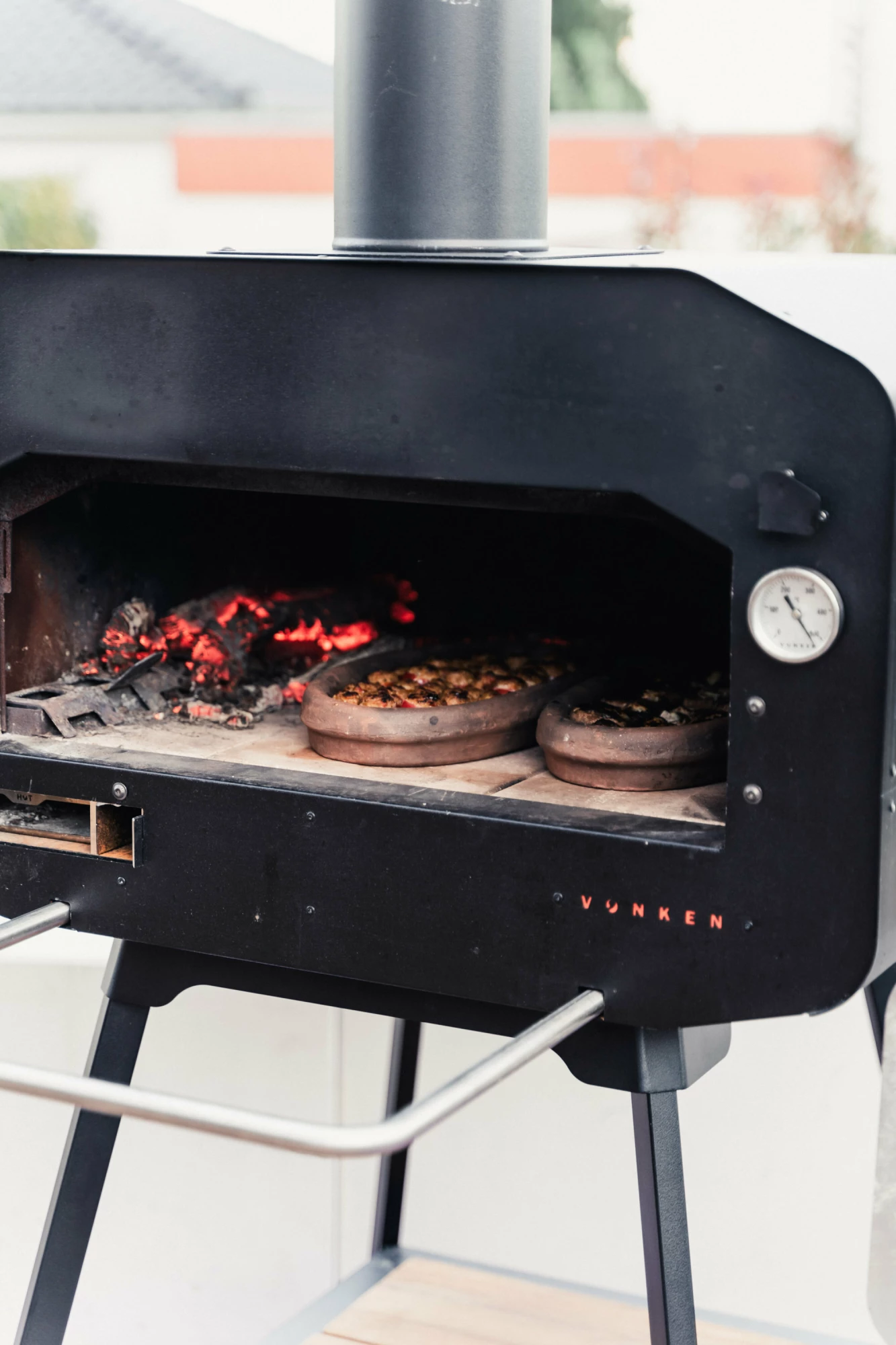 The Vonken Home is a medium-to-large premium outdoor cooking oven that excels in versatility, performance, and safety. Thanks to its modular design and 4cm-thick double-layer base, you can effortlessly prepare perfect pizzas, artisan bread, flavorful meat dishes, and freshly smoked fish. The oven runs on wood or charcoal, ensuring authentic flavor and a unique outdoor cooking experience.