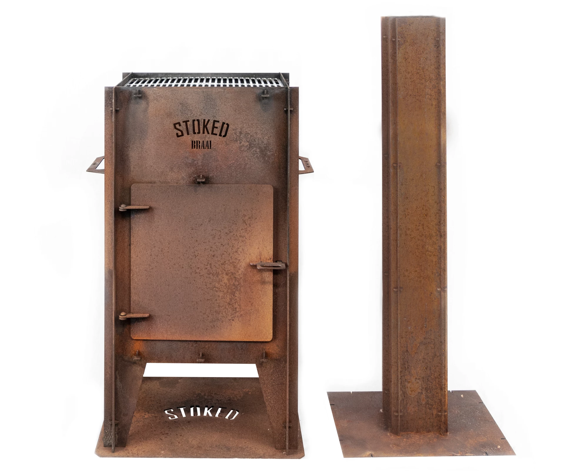 The STOKED Braai Lumberjack combines the power of a traditional wood-fired barbecue with the warmth and appearance of a garden fireplace. Made of 3mm-thick CorTen steel (with a 2mm-thick chimney), this model is designed for years of outdoor use – impervious to the elements. The natural rust layer forms a protective patina, making maintenance virtually effortless.