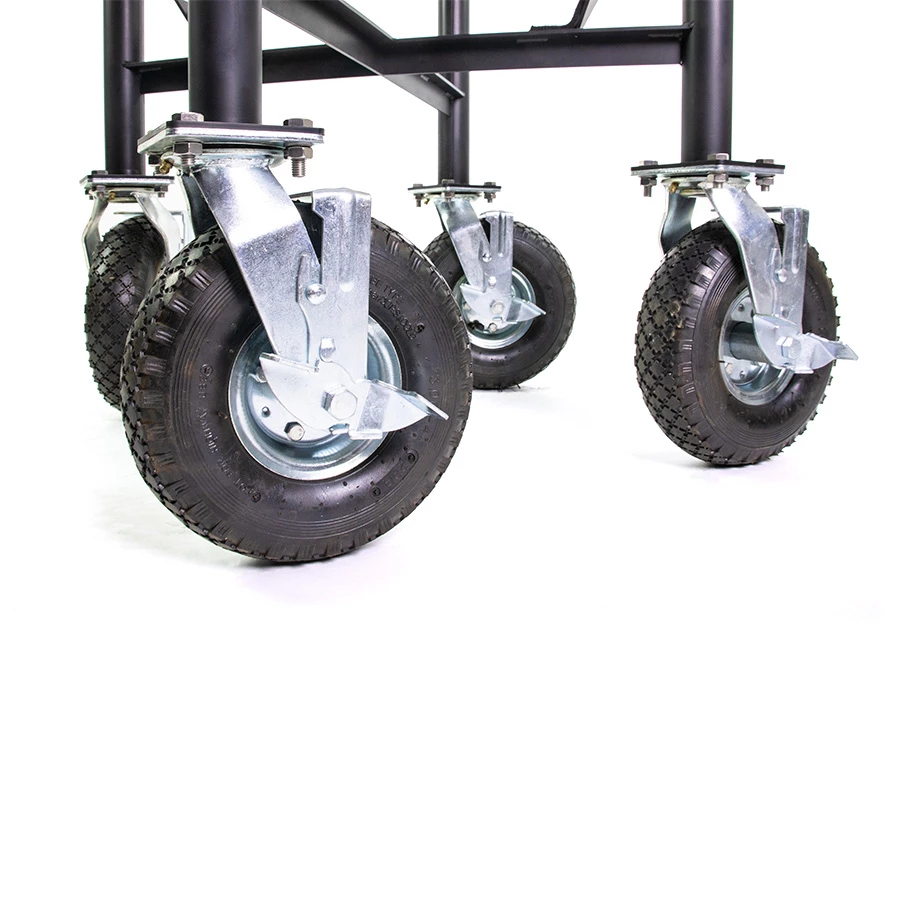Dit robuuste onderstel is ontworpen voor stoere mannen die zich niet laten tegenhouden door grindpaden of zanderige ondergronden. Met het allround onderstel van YAKINIKU® kun je je LARGE Kamado moeiteloos over diverse terreinen verplaatsen. Zonder tafelnest kun je de Kamado eenvoudig op dit onderstel plaatsen. Zelfs op gras werkt het perfect! Met de vloermat bescherm je het gras tegen eventuele brandplekken.