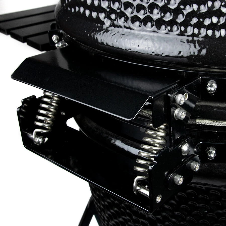 De LARGE YAKINIKU Kamado Black Edition wordt geleverd met diverse handige functies die je kookervaring verbeteren. Zo heeft dit model een luchtdichte ingang in de dome, waardoor je tijdens het grillen rookhout kunt toevoegen met behulp van de Woodchipper, zonder warmte te verliezen. Let op: de LARGE Kamado wordt geleverd zonder Woodchipper, deze dien je apart aan te schaffen. Dankzij het geïntegreerde scharniermechanisme kun je de deksel moeiteloos openen en sluiten, waardoor je eenvoudig bij je gerechten kunt. De nauwkeurige luchtregeling zorgt voor optimale controle over de temperatuur, terwijl de ingebouwde thermometer je helpt om de perfecte gaarheid van je gerechten te bereiken. Daarnaast zijn er handige zijtafels voor extra werkruimte.