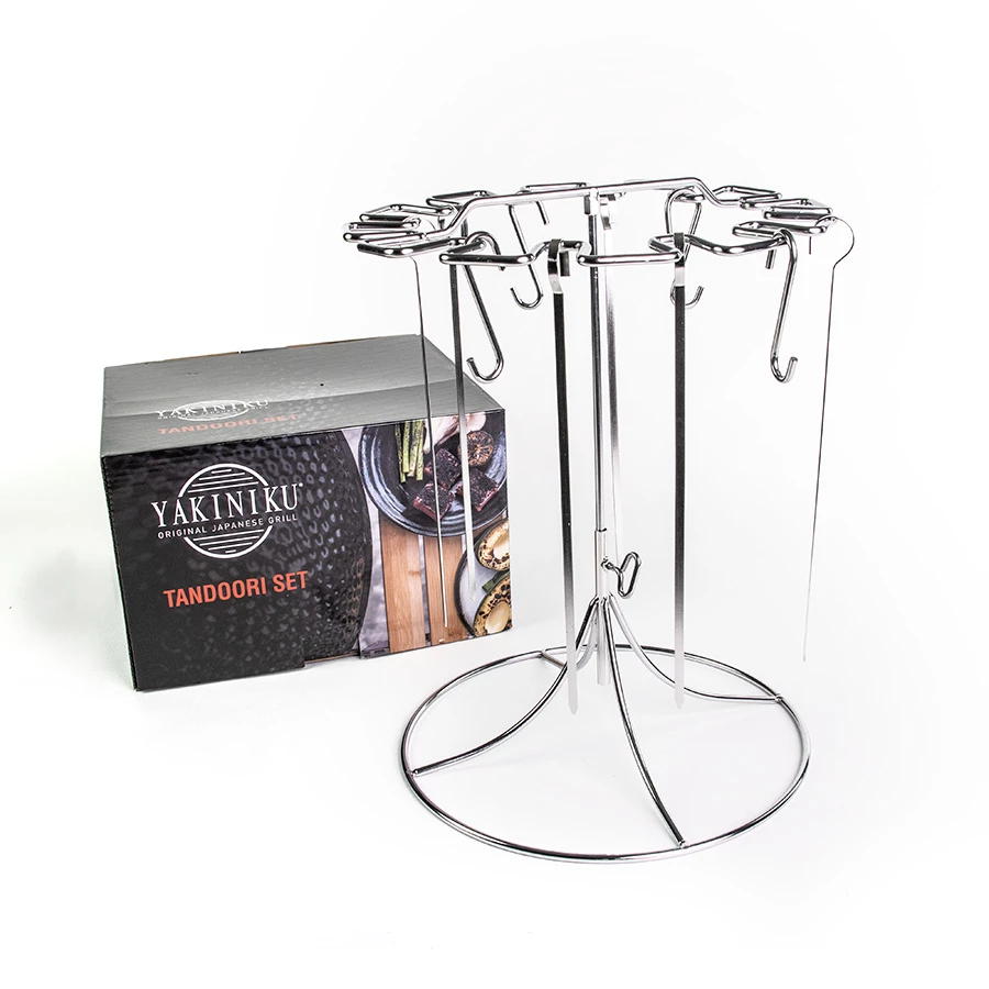 The Tandoori holder is adjustable in height and suitable for use in the XXLARGE, XLARGE, LARGE and MEDIUM Kamado. Made from stainless steel, this set is completely dishwasher safe.